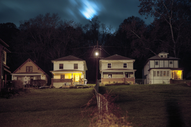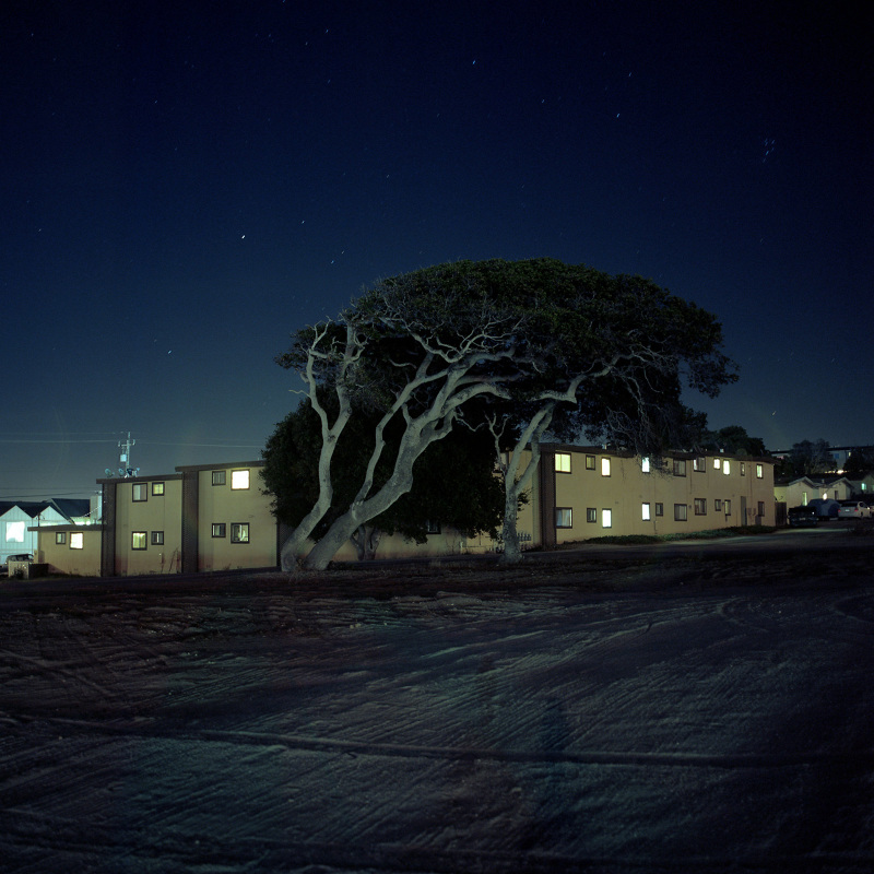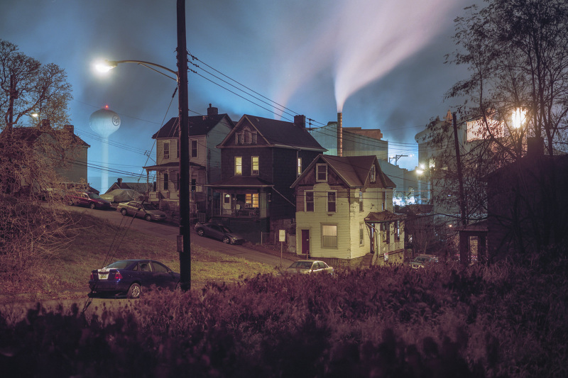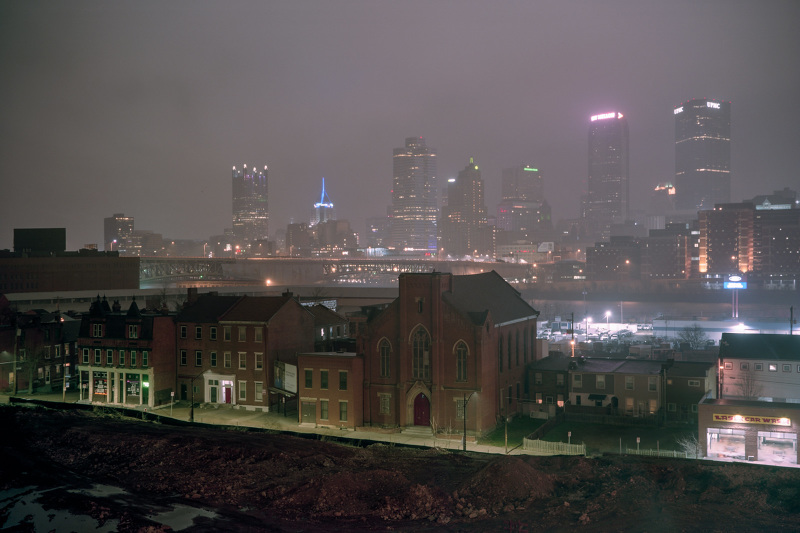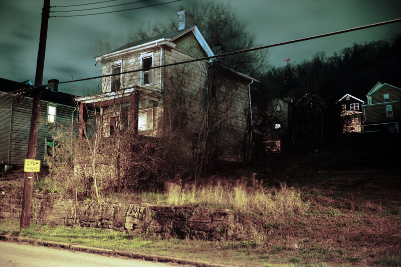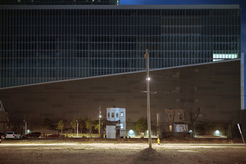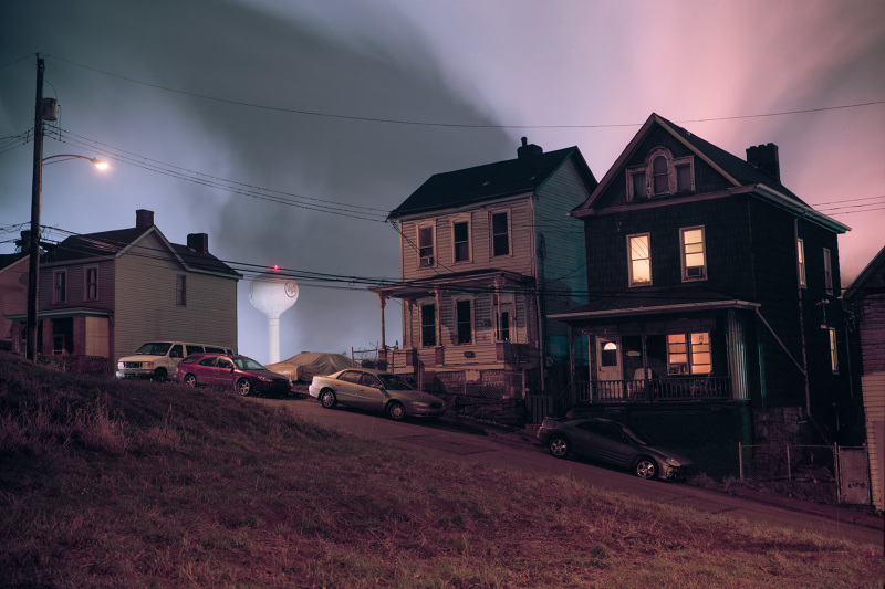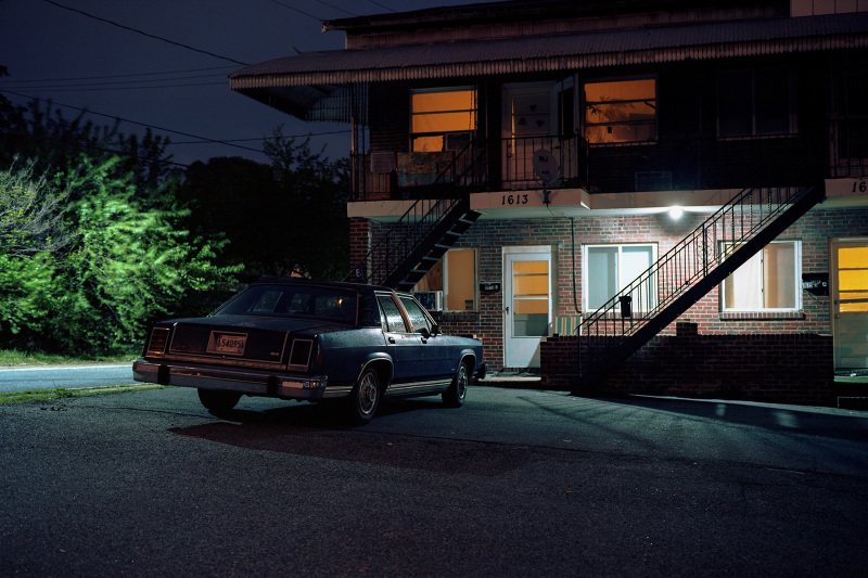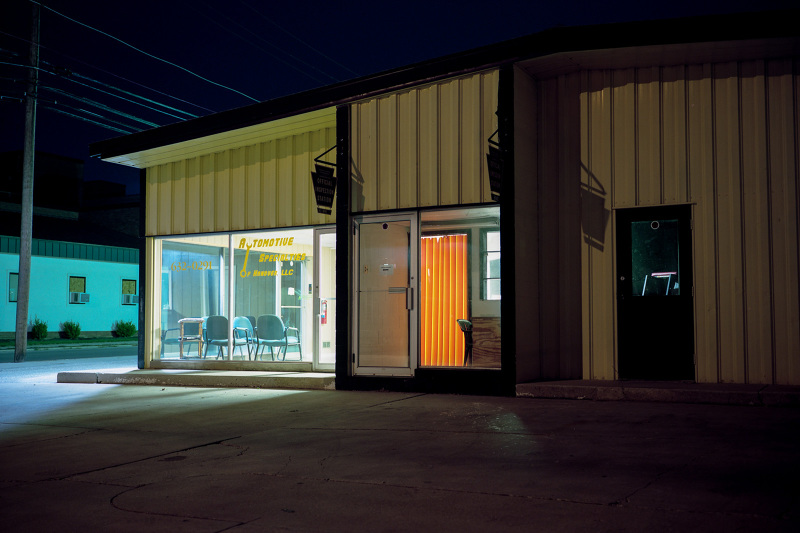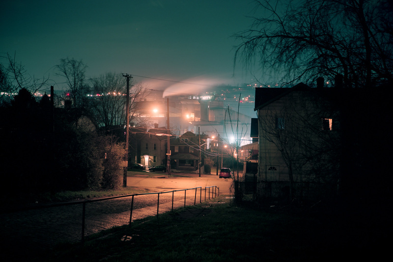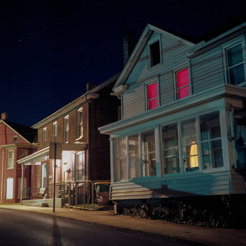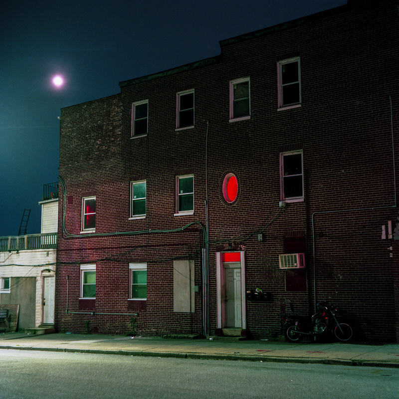 Patrick Joust’s urban photography seems to capture a moment between night and day and a place between spaces humans have made. The coolness of the outside light melts against the warm light of windows, the hot light of neon signs, the trail of headlights from a passing car. The buildings have stories to tell, they’re worn down by the lives of the people who have inhabited them. And though people are very much in evidence–they built the buildings, lit the lights, and drive the cars–they haunt the photographs like dreams or memories.