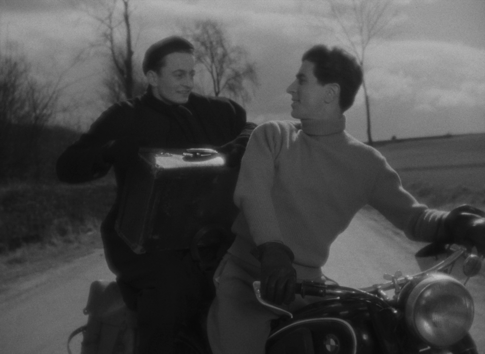 The priest lives on wine, bread, and fruit, because he has a sensitive stomach, and this strange diet and his constant pain leave him dizzy and faint. The film has a beautiful blurred glow, it’s almost out of focus–apparently the result of a poorly attached filter, a mistake which the director loved despite the cameraman’s protest. The landscape is wintery and soft, and the film is visually beautiful. The priest’s face is luminous with a sad quiet glow, and we only see him smile one time, when he’s given a ride on the back of a motorcycle. He’s as childish in his pleasure as he has been in his pain all along.