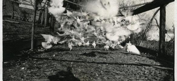 I thought about my birds, I started to run. They don’t like the stormy weather, the thunder and lightening. I’d lie with them, in their small cote, and keep them safe, and watch the wind wilding like the end of times, dark as night except for the stark staring flashes. And they kept me warm with their bright eyes and their racing worrying hearts.