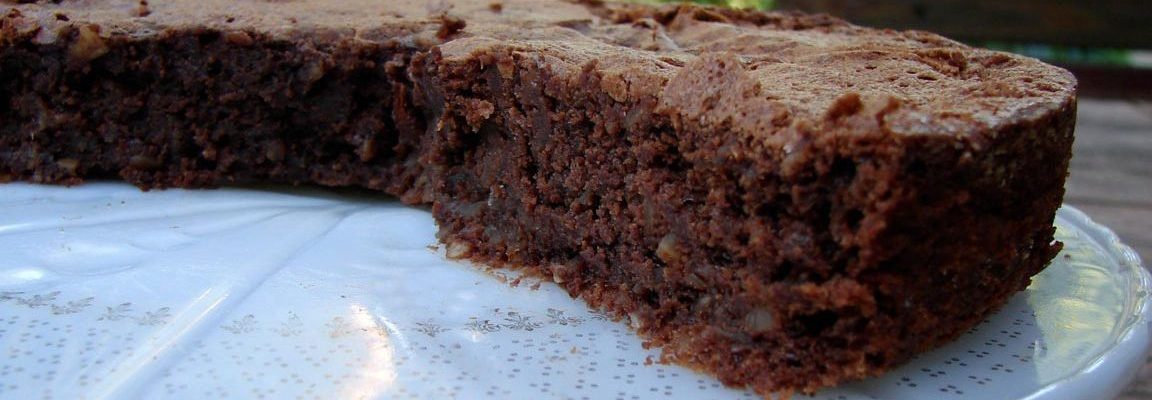 Beat the egg whites till they’re stiff. By this time, the melted chocolate mixture should be somewhat cooled. Stir in the vanilla, and then stir in the egg yolks. Add the almonds and corn starch, and beat until everything is very smooth. Fold in the egg whites. Pour the batter into your prepared pan, and bake for about 35 minutes. The top will be lightly crusted, and the edges will be firm, but the center will still be a bit soft.
