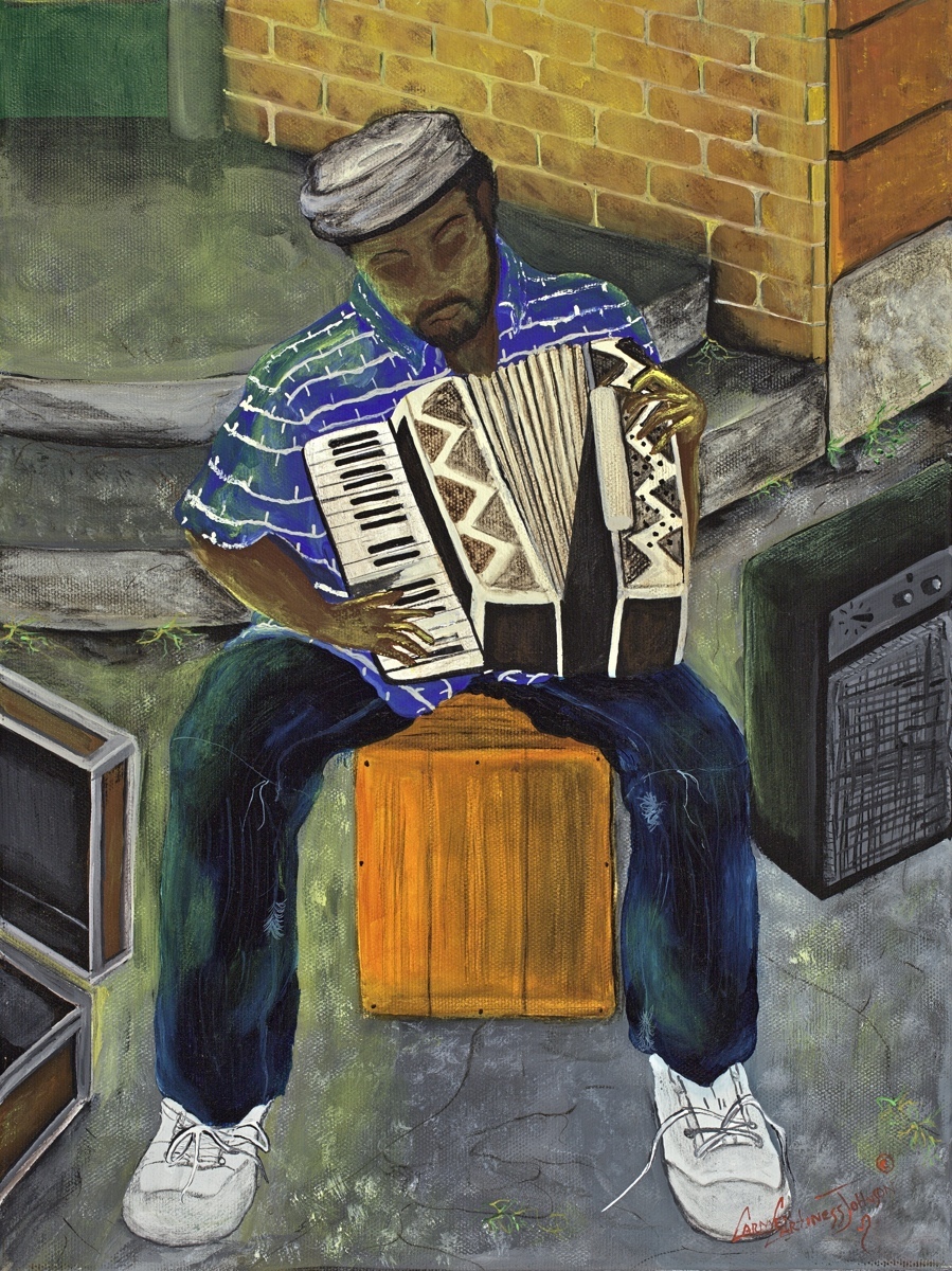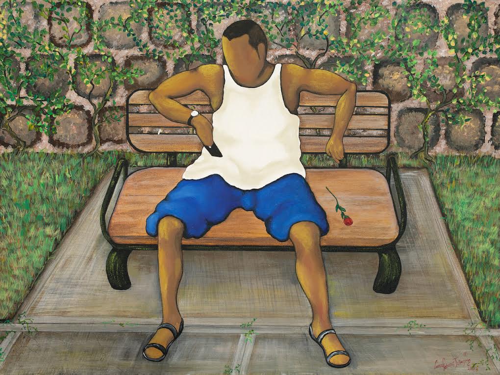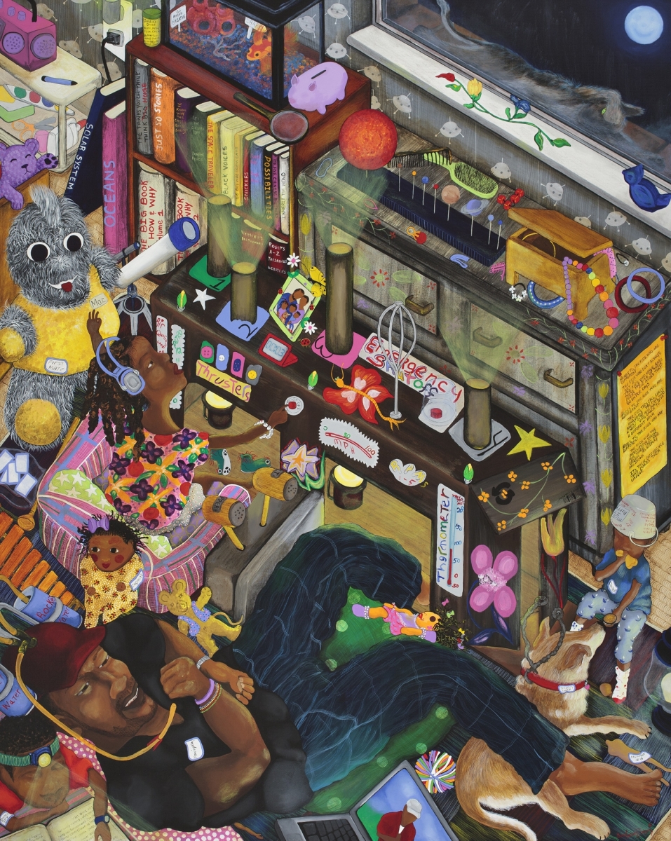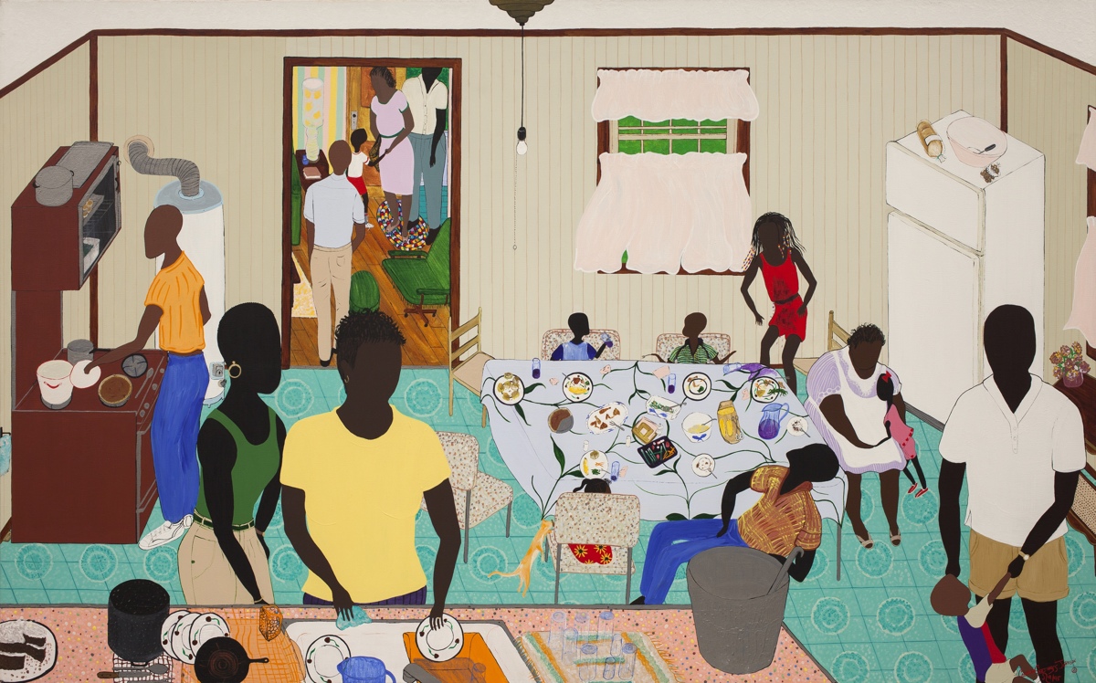 Carmen Cartiness Johnson creates narrative figurative work using bright and bold colors that tell stories of everyday people, largely women facing ordinary life’s challenges and joys. Her artistic influences include Diego Rivera, his use of color, political content and composition, the simplicity of Jacob Lawrence’s shapes, and the complexity of Romare Bearden’s collages. Her work is in collections around the country, including the Charles A. Wright African American History Museum in Detroit, The Philadelphia Museum of Art, and the Library of Congress. See more of her work here.