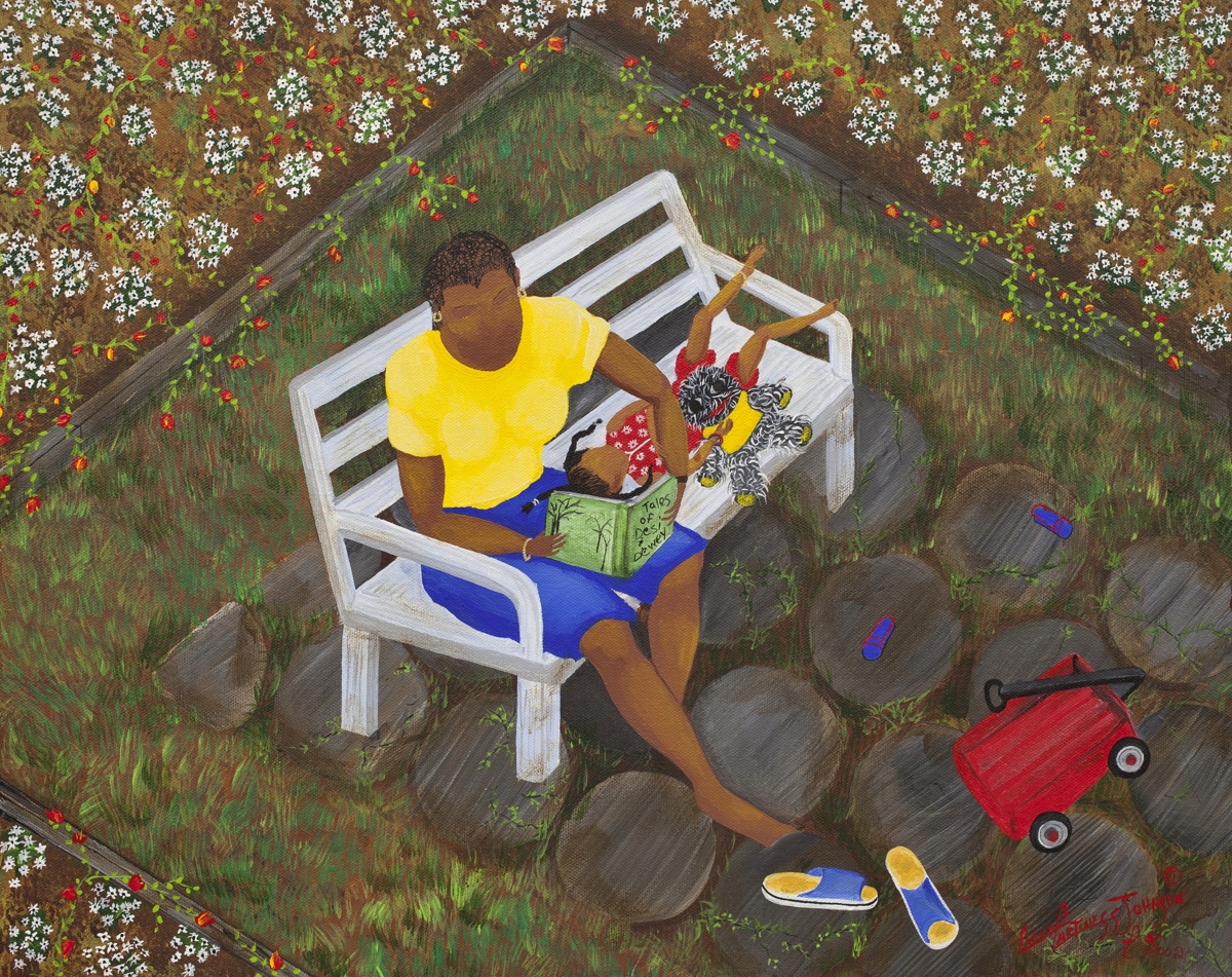 In continuing with the idea of storytelling, I love the images of people reading—to themselves or to children. It seems like one of several themes that run throughout your art. Do you think of your work in terms of recurring themes or motifs?