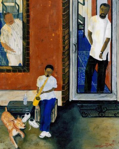 When I start a piece, I think about the subject, placement, shapes, color and filling the whole canvas. Yes I do think about the relationships of the figures when I paint. Occasionally I paint main figure and build up the structure around that. I am concerned about the appeal of the work, that seems to be later in the process. Asking myslef what the work needs to be better.