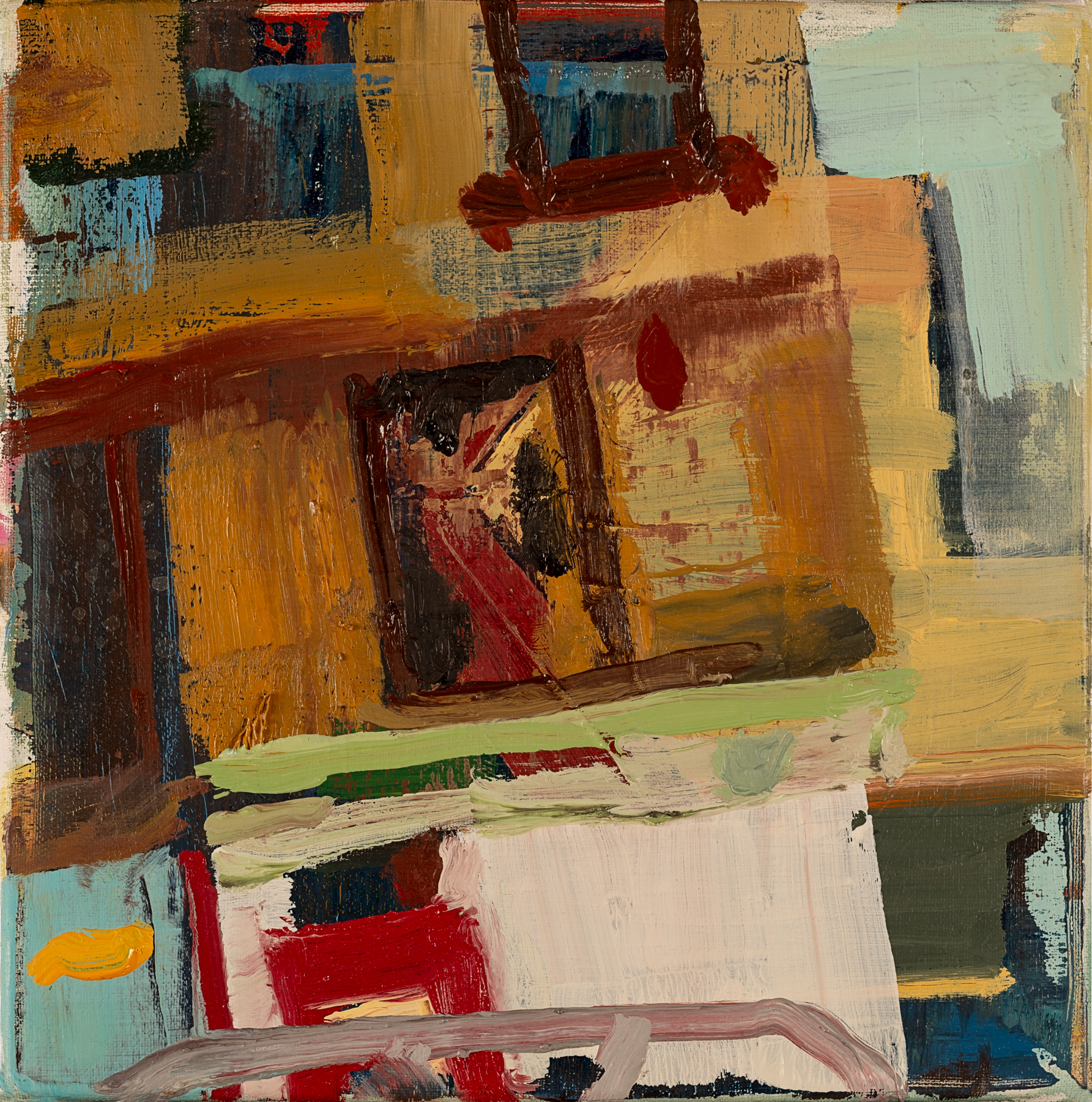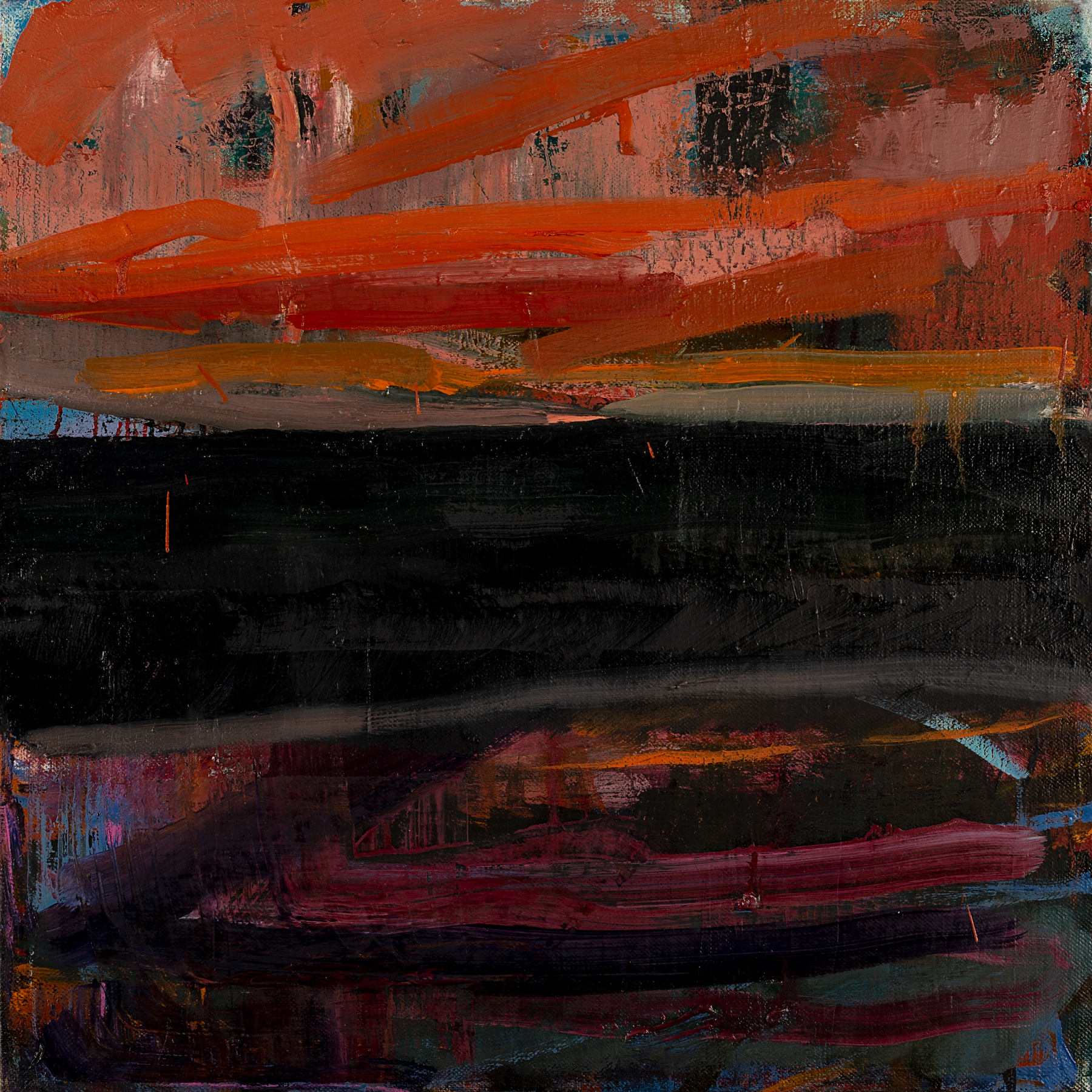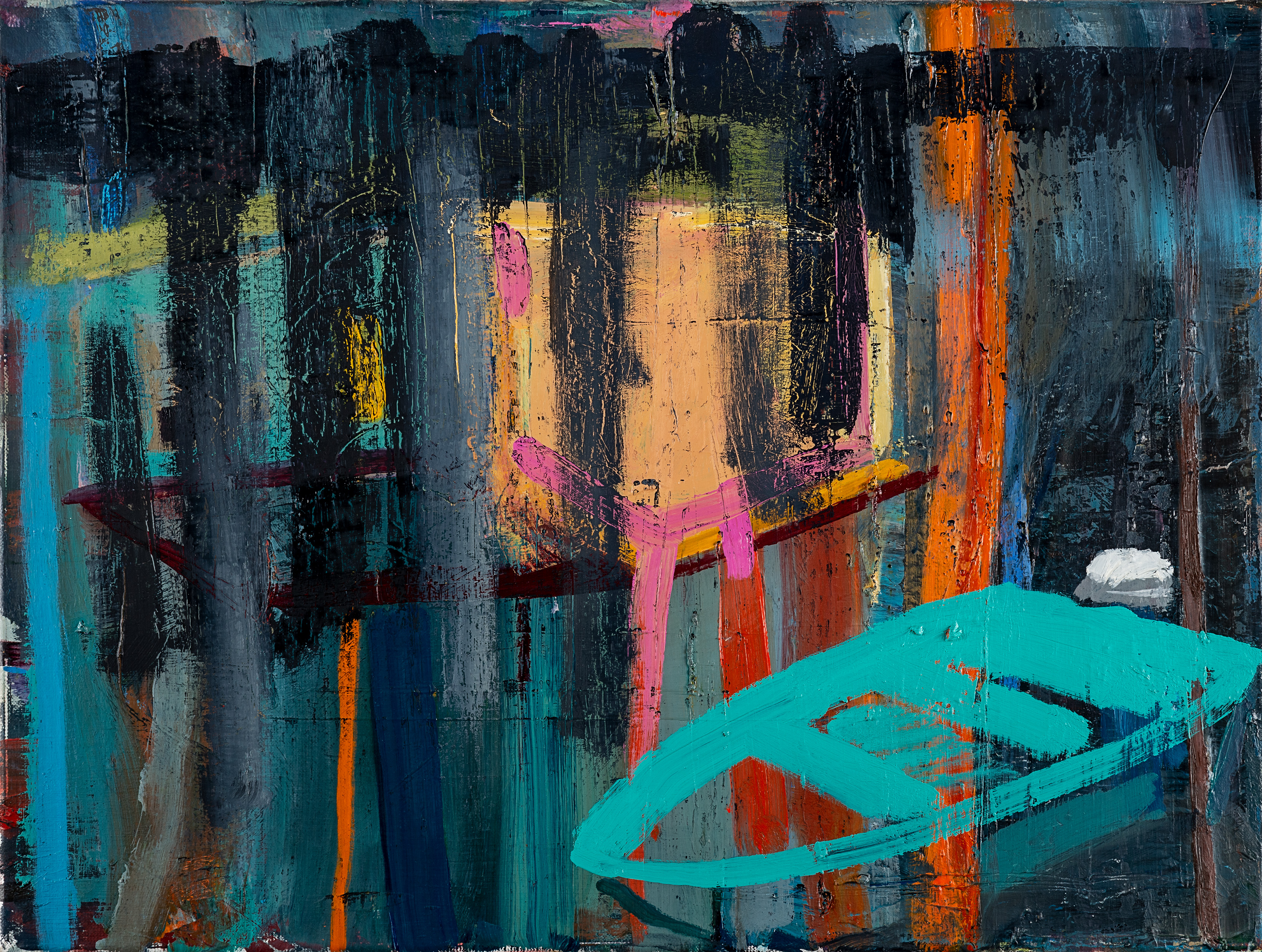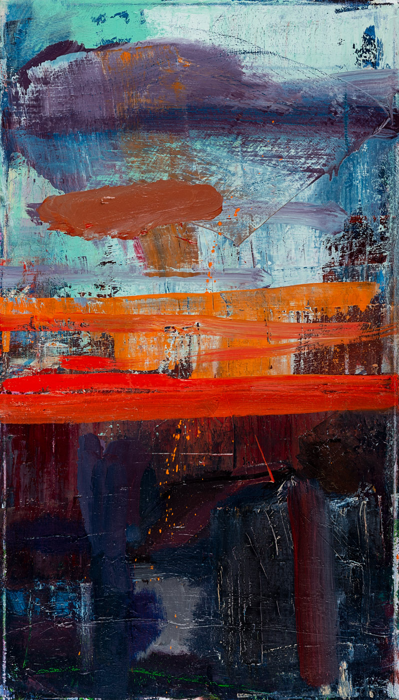 In almost every painting I’ve done over the last seven years, the image I begin with at the outset morphs completely into a new incarnation at completion. The most important thing for me during the painting process is to stay attentive. If one avenue of inquiry seems to be going nowhere, a new one may open up with a mark, a smear, a scraping away of paint that reveals under layers that might suggest something new.