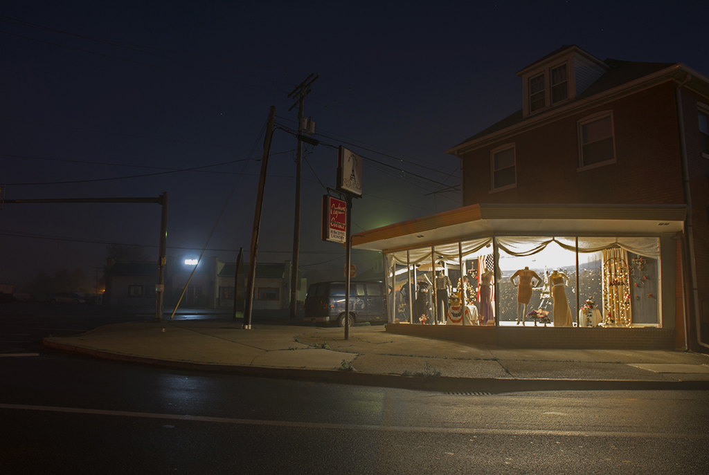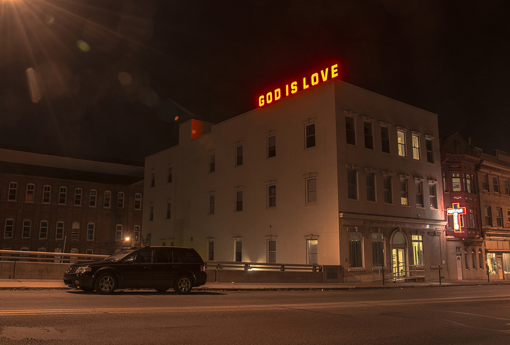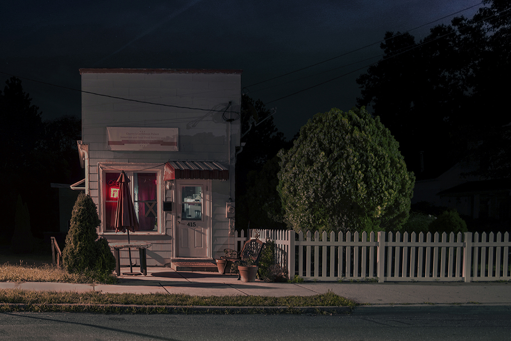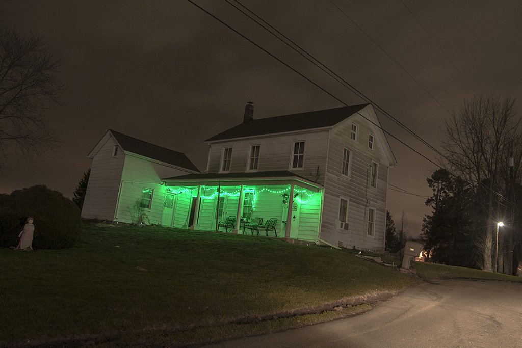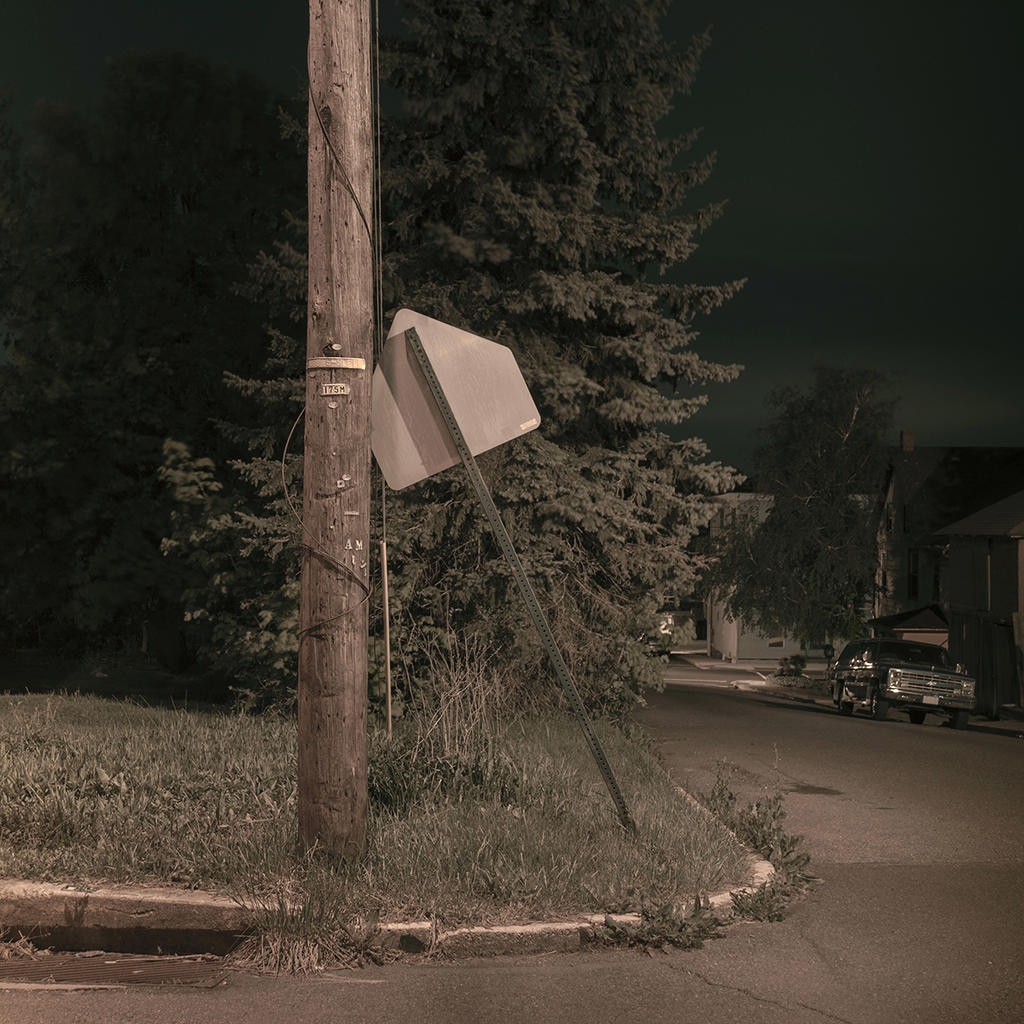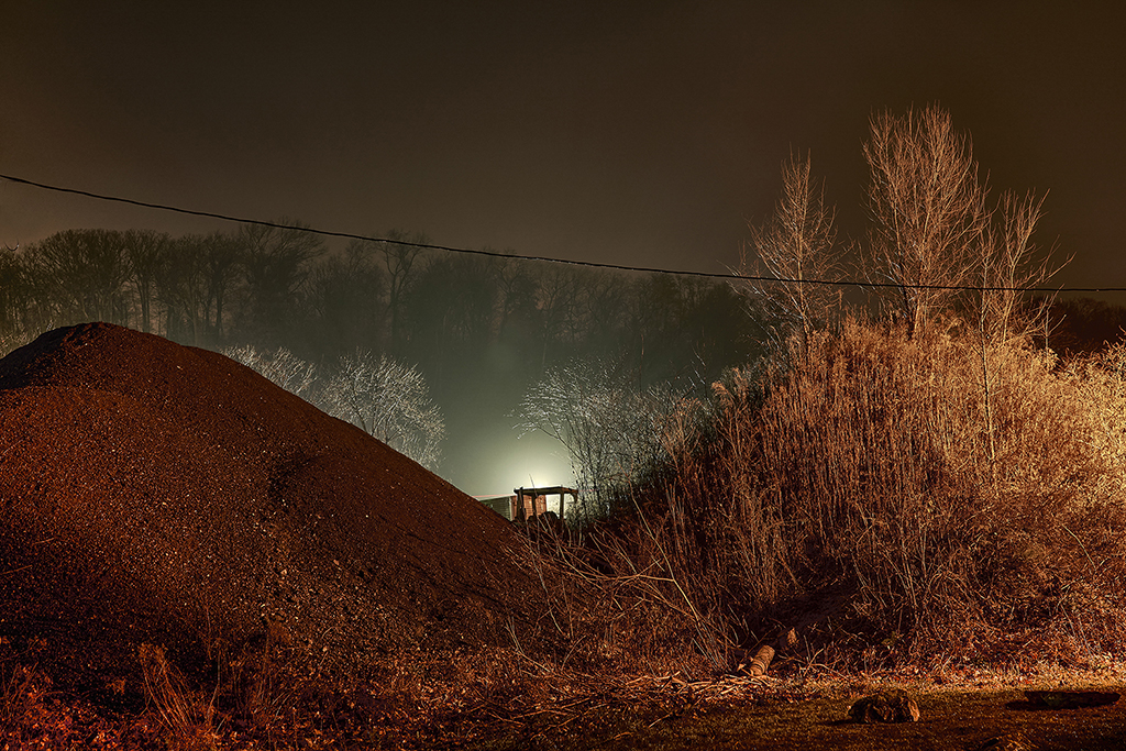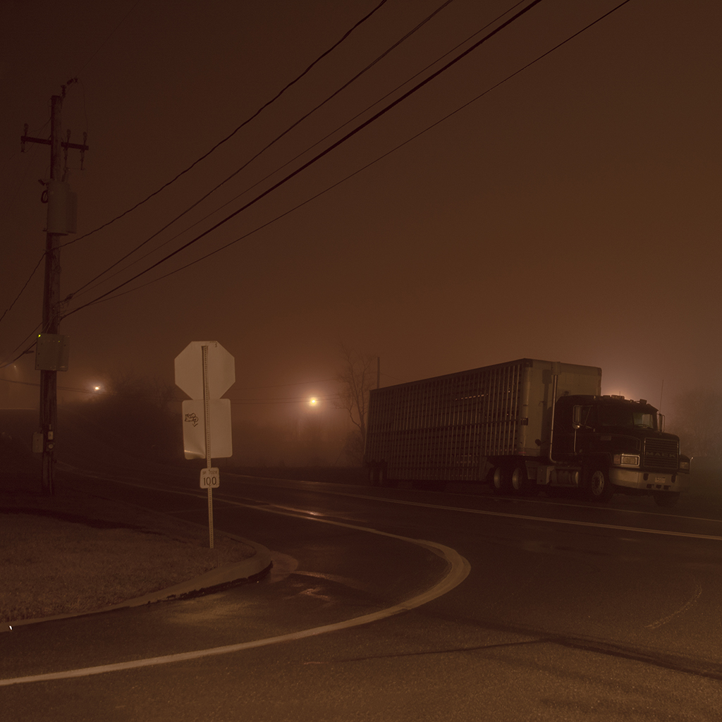 Since the close of 2015 I have been photographing at night in the Easton, Pennsylvania area. Easton Nights is a story which grew from the unique and uncommon valley in which the city lies, and is told with images of the unpeopled landscapes taken at night. The night has its own visual rules, its own color wheel, and its own ethereal presence. Here, in the small hours, the world we see as mundane, cascades into dream. City lighting is meant to light up objects in much the same way you would light a still life or a stage set. Coupled with the pink light emitted by the odd sodium vapor streetlights, Easton becomes a silent city of lit stages, all in unreal color and shadow. Every space acts as a reflection of the people who made it. An empty geometry, with its decades of formation, creates an unusual living lyricism; emphasized with paint stroke-like diffractions, animated distortions and the occasional painted words which connect to the moment in our time. Like a surreal scene from a Guilermo del Toro film: trash bins and Toyotas, stop signs and doorways all come to life; leaning, stretching, and emanating with umbrageous hues. These are our stages, with the houses our beehives, and the doors our portals. Complete they are a mimesis of our daily life, as can only be shown in the mystical emptiness of night. A world of ready-mades that would make R Mutt proud. Then with the dawn, comes the beginning, where we all wake, then act; all while these magical and romantic worlds return to sleep.