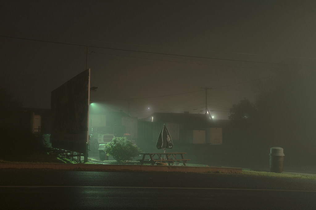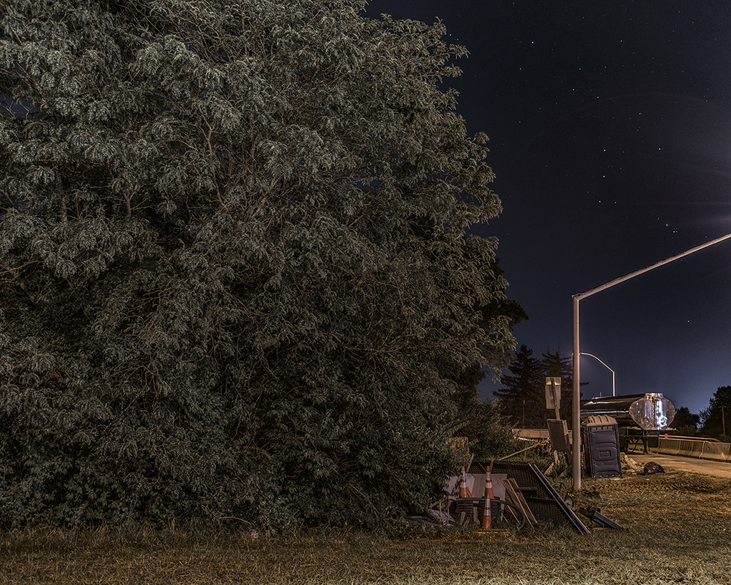 Peter Ydeen’s nighttime photography captures a feeling of future nostalgia–a sense of looking back on the present moment from a great distance. The spaces where we do our living are transformed by the wash of memories and dreams. The work is a loving portrait of a particular place, but it captures the side streets, back alleys, and nighttime gardens on the edges of many an American city. The places where people live, shop, and gather day-to day tell a different story in their ringing emptiness, bathed in a ghostly nighttime glow.