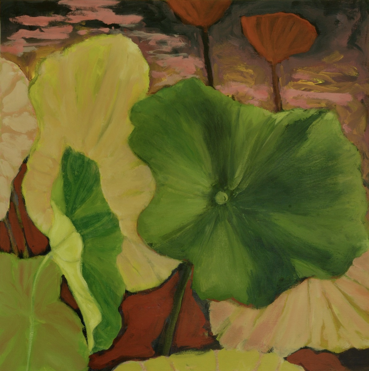 I began my most recent botanical series of paintings during the Covid-19 pandemic and travel ban. In a departure from my usual studio practice, I began to work from the Instagram photographs of a lifelong friend who lived on the West Coast, Laurel Adrian Termini. Termini and I have not seen each other in person since we were roommates at Barnard College in New York. Laurel connected with me some years ago on Facebook and Instagram noting that we had both gone into healthcare and had become artists.