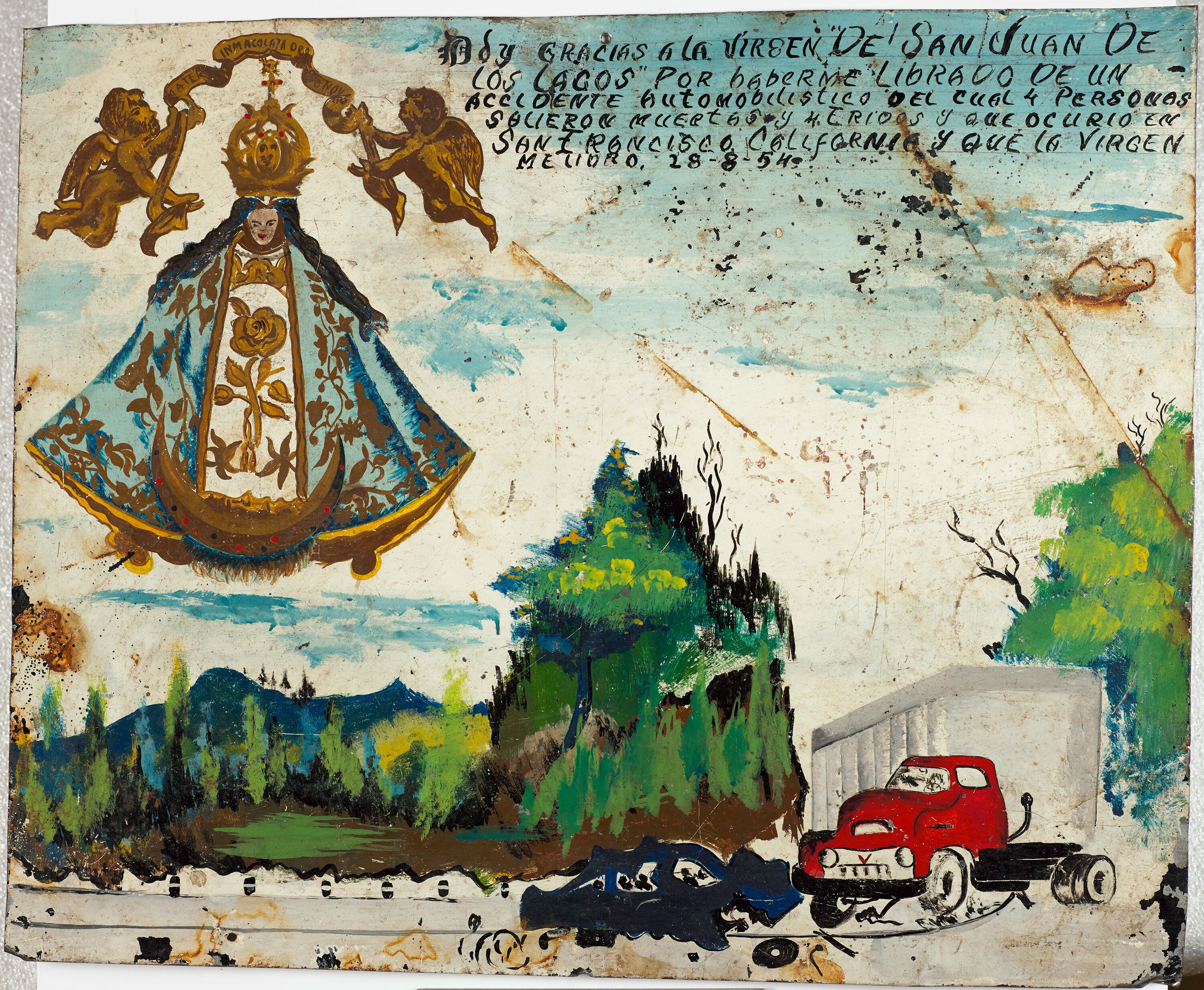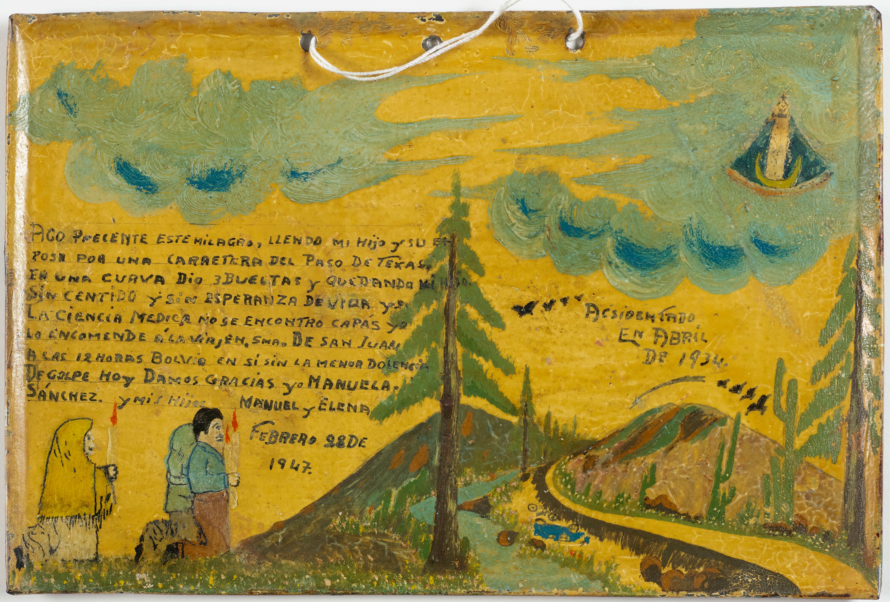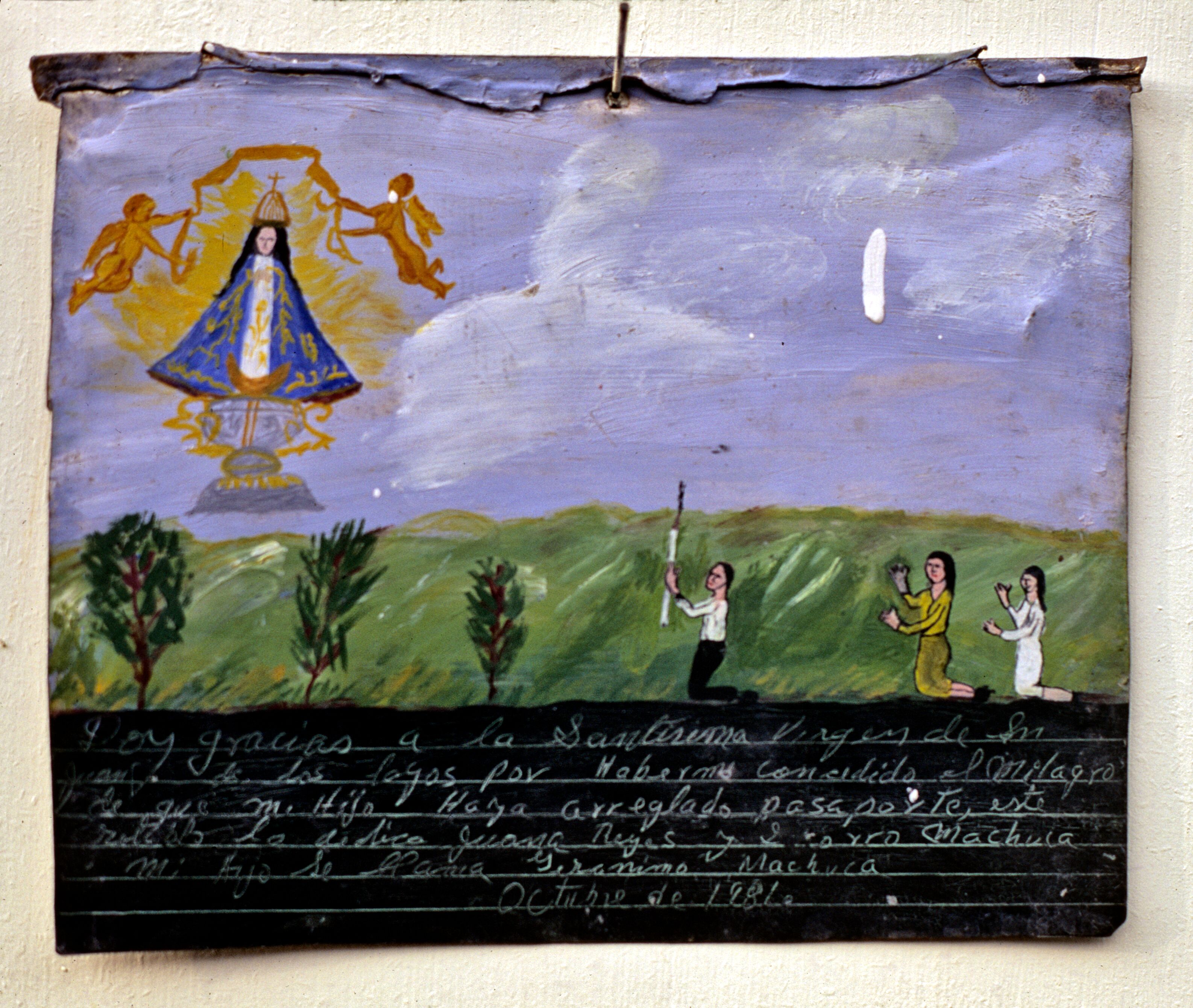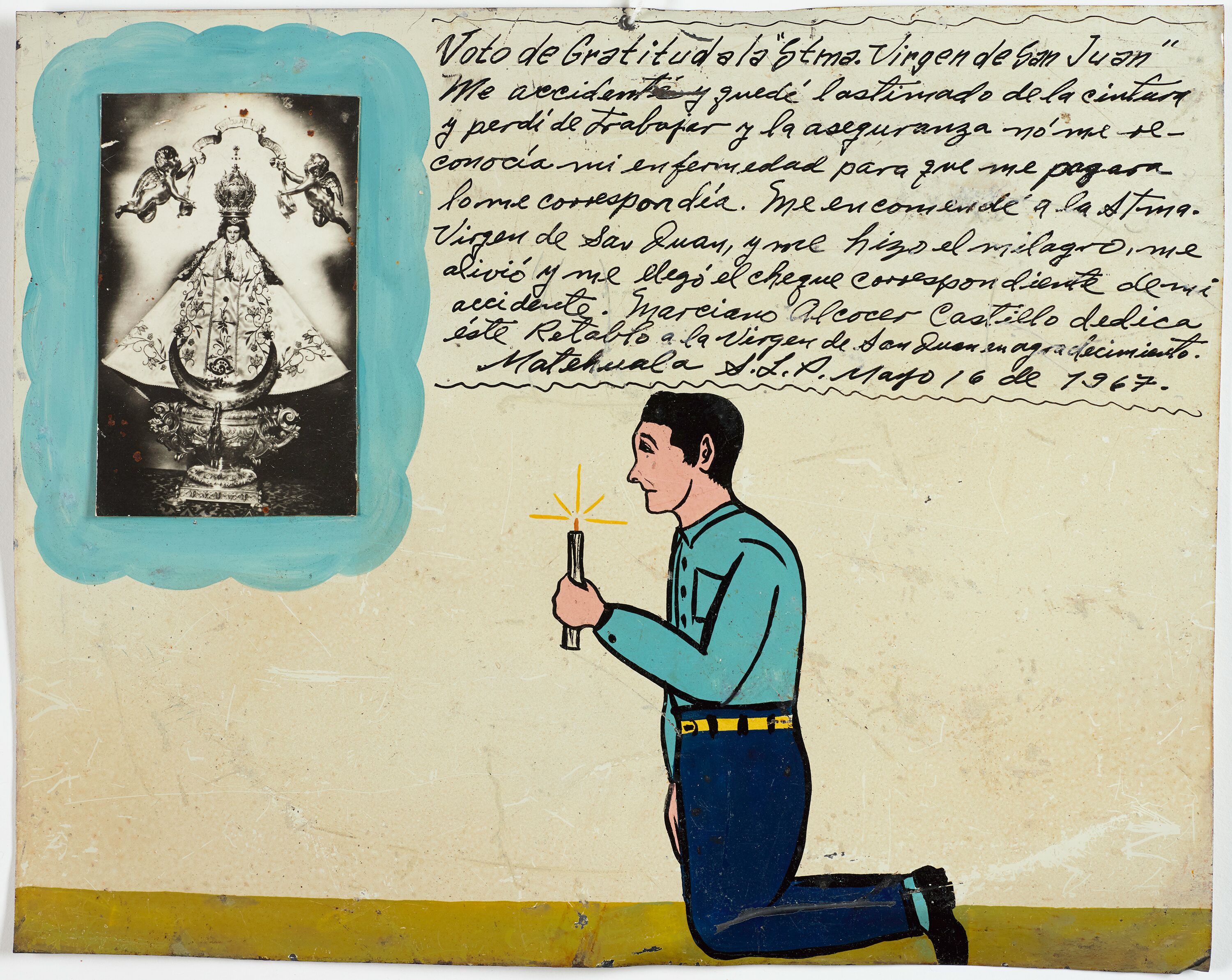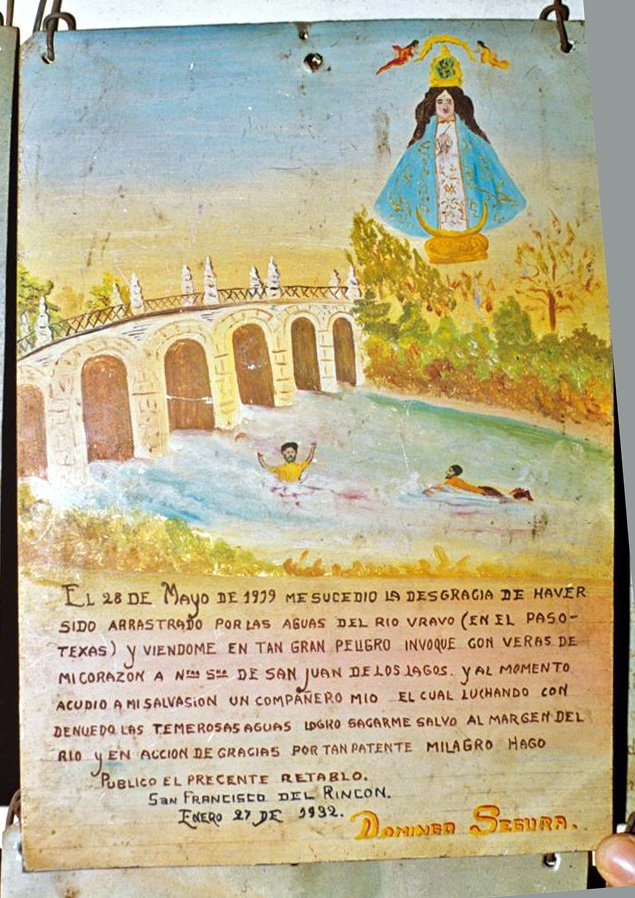 Retablo of José Cruz Soria, 1960 I give infinite thanks to Our Lady of San Juan de los Lagos for having enabled me to cross the border and return with health. José Cruz Soria. San Miguel de Allende, Guanajuato. February 2, 1960