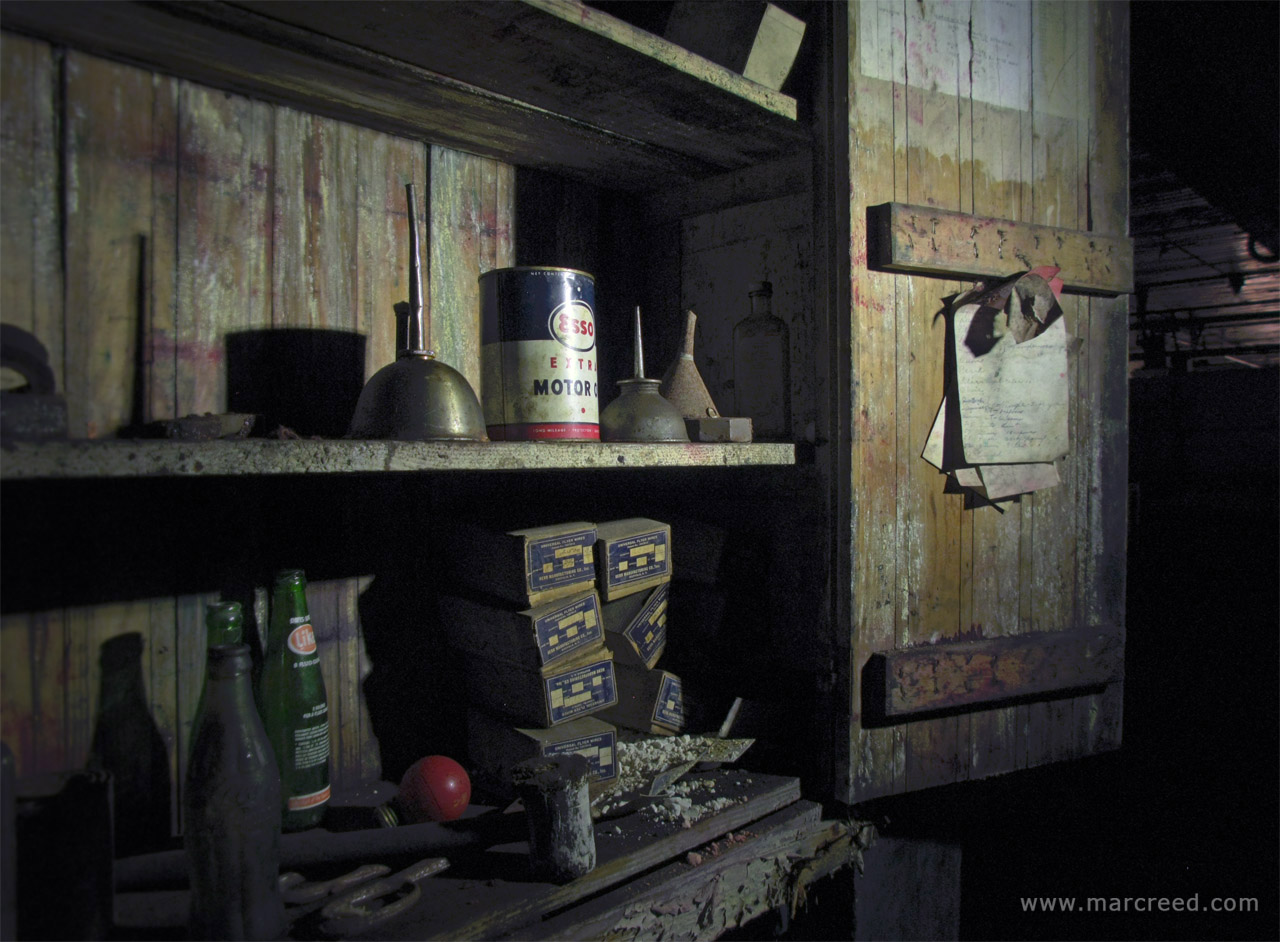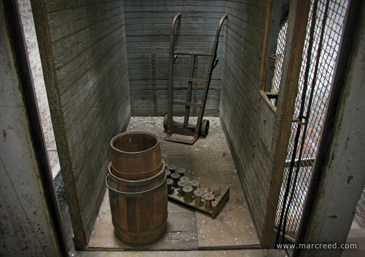 Herb Crawford bought the already vacant property in the mid 1980s with plans to convert it into an office complex, but those plans never materialized. Despite his initial plans for investment, he is keenly aware of the site’s historic significance. He has turned down several profitable offers from scrapping and demolition companies who would love to sell his historic machines for their weight in scrap metal. He has also turned down offers from historic preservation groups who he says typically “offer too little and expect too much”. About a year ago, word of Herb’s mill reached photography student Matthew Christopher who managed to convince him that there was money to be made from allowing photography tours. So for now, Herb allows photography groups, and proceeds go toward the immediate need to repair the roof. But Herb is in his mid-seventies and has held onto this property for nearly 30 years. The money from the photo groups may amount to enough to fix the leaky roof, but the future of this historic and unlikely place remains uncertain.