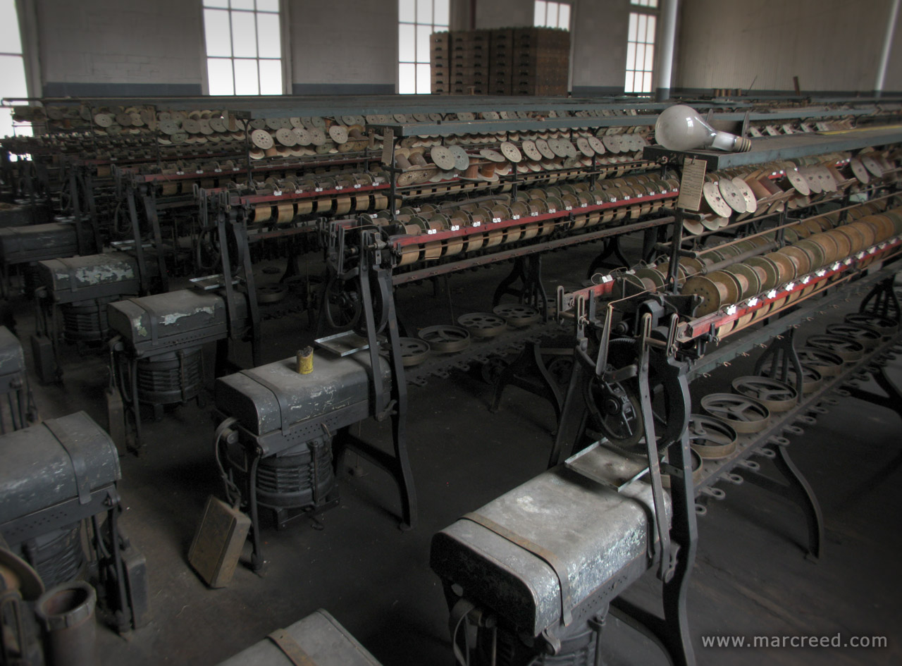 This mill is not only the last standing Klotz mill, it is the last of its kind. Its doors were closed in 1957, and today it stands remarkably intact: 48,000 square feet of mill floor, 360 twisting, winding, and spinning machines, steam and drying chambers, and tons of parts and accessories – left exactly as they stood 56 years ago. Decades ago spinning mills such as this were commonplace. But today – as far as anybody knows – this is the last one like it left in America. Certainly it is the most intact.