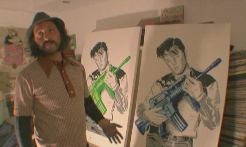 Whatever else it is, I think Exit Through the Gift Shop is a sneakily beautiful film. It’s clever and amusing, certainly, but underneath all this lies a warm and beating human heart. The film asks questions–literally–the characters are always asking questions, and then contradicting themselves in ways that raise more questions. It makes us think about anonymity and celebrity, about the commercialization of art, about whether or not art has any meaning, or needs to have meaning. Guetta’s art, which is dangerously similar to Bansky’s own, is seen as meaningless, but it sells for lots of money, and Guetta, like Bansky, becomes a celebrity, which, as the film shows it, seems like a depressingly empty pursuit.