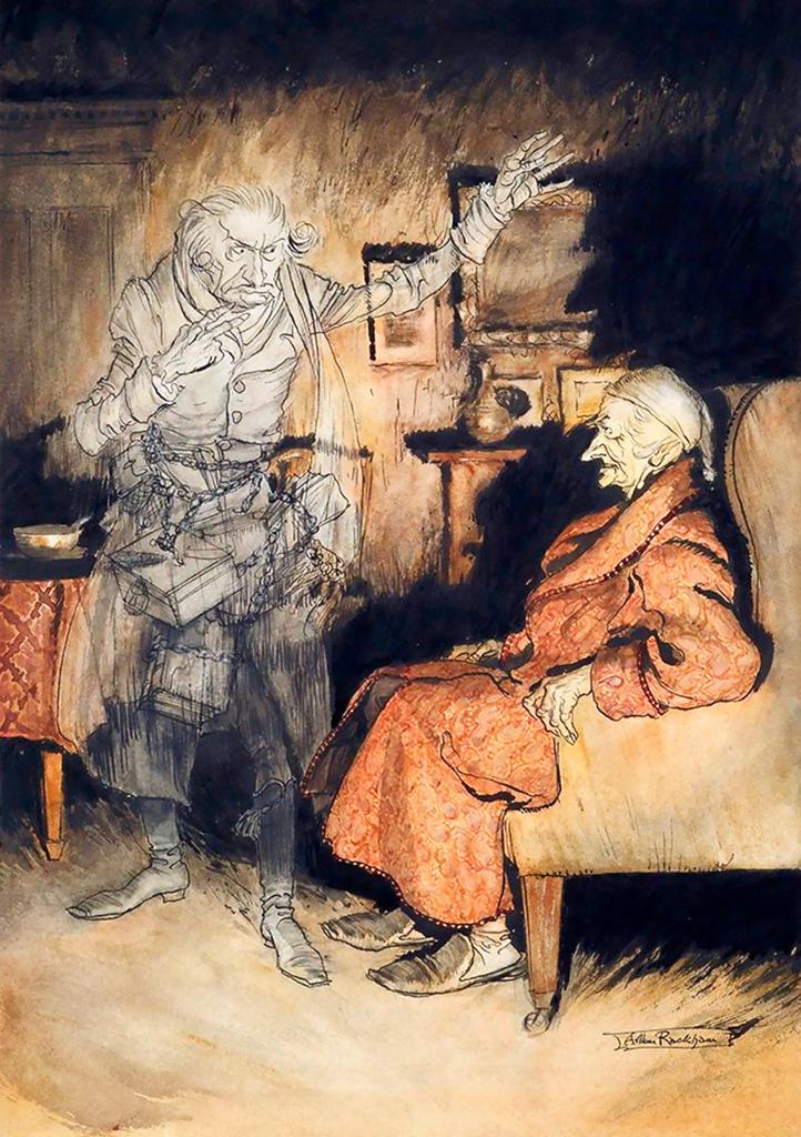 Often the spirit’s relationship with their friend is oddly human – frustrating, complicated, and even at times full of warmth and humor. Shakespeare gave us Hamlet’s ghostly father and Banquo, Macbeth’s ghostly dinner guest. Dickens gave us poor Ebenezer Scrooge’s ghost and three spirits. Miyazaki’s world is full of friendly and frightening spirits–Totoro, No Face, a river spirit, soot sprites, all perhaps descendants of the Yokai, demons and spirits who embody everything from rain and wind to old age. James Stewart plays two characters with imaginary spirit friends; Elwood P. Dowd’s best friend is a giant rabbit named Harvey, and George Bailey has an unlikely guardian angel named Clarence. Perhaps the most remarkable demon of all is Ivan Karamozov’s Devil. He’s so unlikely, so brilliantly described, and such a perfect distillation of Ivan’s fears, hatreds, and hopes, such a brilliant foil for Ivan’s wonderfully prickly nature.
