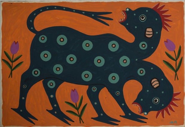The work of Ukrainian artist Maria Prymachenko has been labeled as “folk art, naive, primitive,” with all of the dismissive connotations those words imply. But her artwork–embroidery and paintings–is anything but simple or innocuous. It’s bright and colorful and full of beautiful birds and flowers, but walking among them are twisted beasts. These creatures are born of the violence, sadness, and thwarted hope that is inflicted by powerful men on the world around them, inflicted on the people they think of as less than human. These are the rough slouching beasts of myth and dreams and, sadly, of reality. And Prymachenko’s artwork, though biting and expressive and bold, is also strangely tender. Like the recurring dream of birthing a strange mutant creature, and fearing it, but caring for it anyway, nurturing and protecting it. We feel she loves these odd creatures, grotesque and terrifying though they are, and regards them with a compassion that feels profoundly generous and brave.