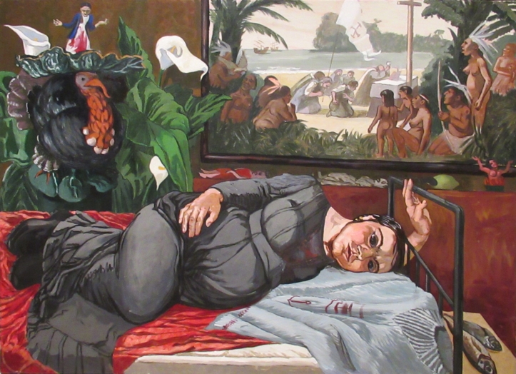 Rego’s oeuvre is intertextual, with her biography being but one of the elements to read, along with other narratives, some classic and identifiable and others more esoteric. But from whence came Paula Rego’s rage, what is the source of her personal wrath? There are plenty of flash points in her life to identify, many of which can also be situated within greater contexts of misogyny and injustice. Studying art, itself, and the intent to have a career were denunciations of the role prescribed for her by culture and family. Rego’s mother was especially overbearing in her attempts to restrain her, and she lived in resentful terror of her until she died in 2001. Rego grew up in the repressive regime of Salazar and a weaponized version of Catholicism in Portugal (Figure 4) and was sent there to live with her grandmother while her parents moved to Britain. She later moved to London to study at the Slade School of Fine Art. Rego reports having several abortions while an art student, though all the pregnancies, starting at the age of 18, were by Victor Willing. A fellow student, Willing, who was older than Rego and married when he began his affair with her, first approached her to pose nude for him. In fact, the first time they slept together he brought her to a room at a party and told her to take down her knickers. Rego was a virgin and afterwards she went home alone in a cab while he cleaned up the “mess.” He repeatedly threatened to return to his wife with each pregnancy if Rego chose to keep the child. Rego recalled that most of the women she studied with had abortions, and she especially highlighted the vastly different consequences for the men and women involved in