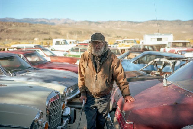 On one of my road trips with Laurence we travelled through the Sierras and then into the state of Nevada. The dry climate serves as a preserver for old things of various kinds including, of course, the automobile. We both took lots of pictures, particularly in the towns of Beatty, Goldfield and Tonopah. On the last day of the trip, we passed through Benton, which sits just inside the border of California. We saw an old Subaru in front of a tall fence obscuring other old cars and decided to stop. We hadn’t been driving for long, which was good because that sense of curiosity and willingness to prolong the drive was still there.