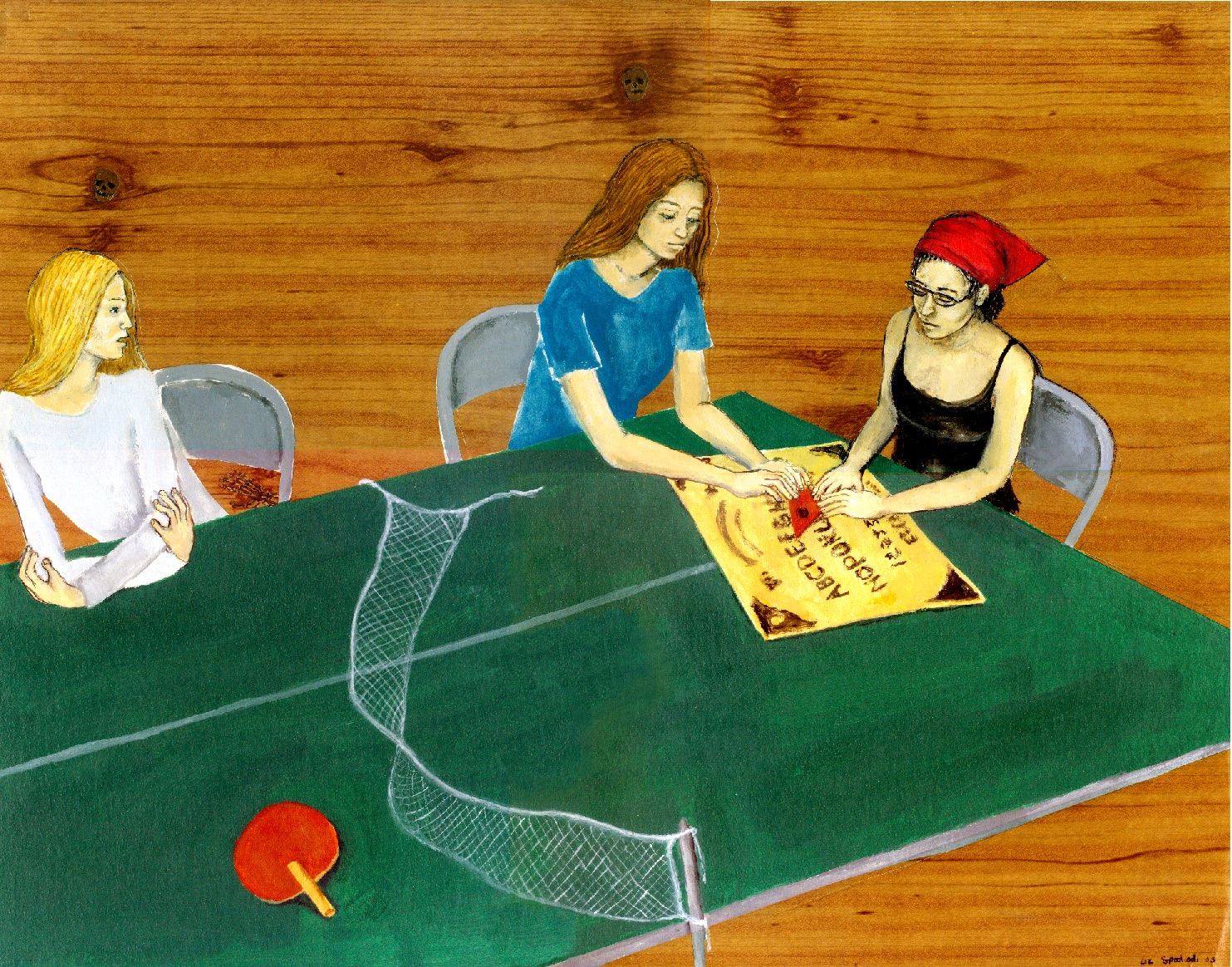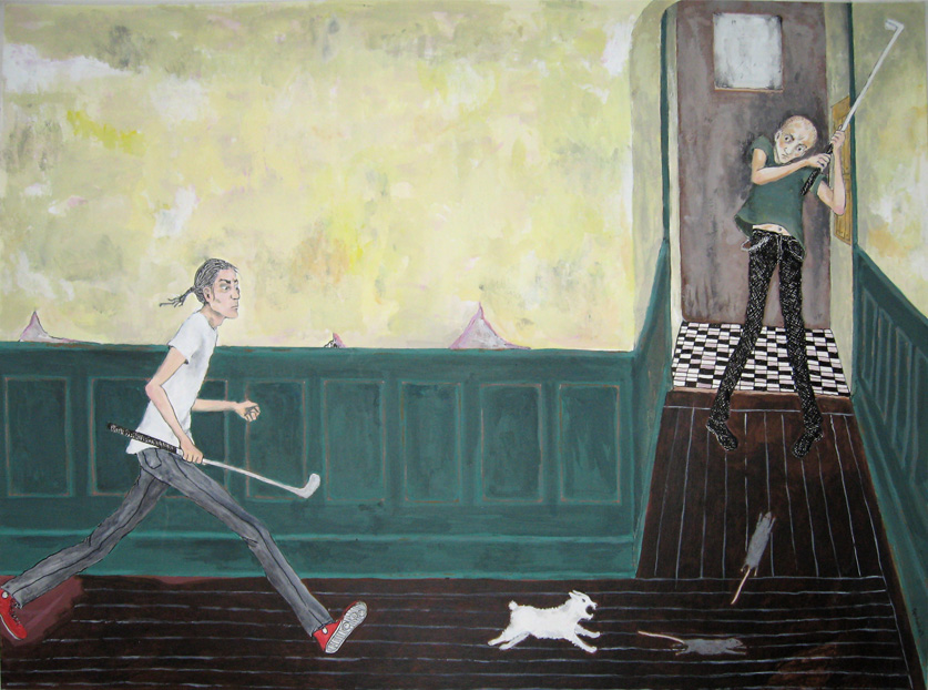 Along the same lines, can you talk a little about the supernatural elements of your paintings—ghosts and vampires and zombies? It feels less like a picture of these creatures and more like a commentary on the people in the pictures, as if somehow the actions of the humans conjured the monsters, or the humans are unwittingly turning into the monsters. But maybe that’s true of all monster myths!