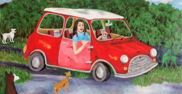 A couple of paintings in particular are so intriguing and mysterious to me. I don’t know how you feel about explaining your work too overtly, but can you shed a little light on “O,” White Van,” and “World Gone Wrong” they all seem to have a chaotic, cult-like feel, that’s maybe not all that different from the monster pictures, in terms of converting people to a (maybe?) dark side.