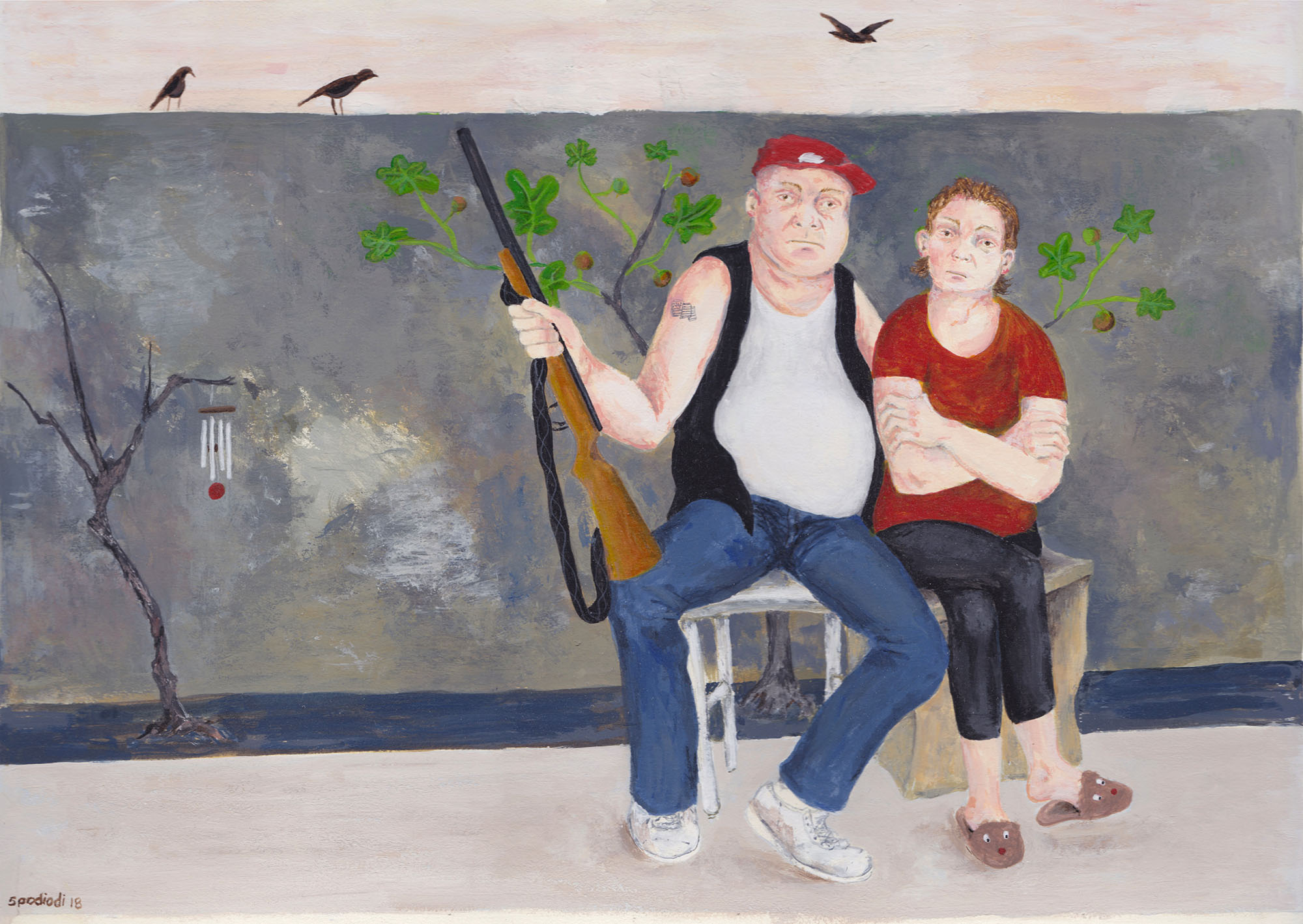 Animals are a frequent visitor to your paintings, cats, rats, dogs, sheep, birds, a deer, a turtle. Often they seem to be observing the human behavior, but sometimes they seem a little vulnerable, and other times almost threatening. Is there a conscious pattern? Are they symbols or characters or maybe both?