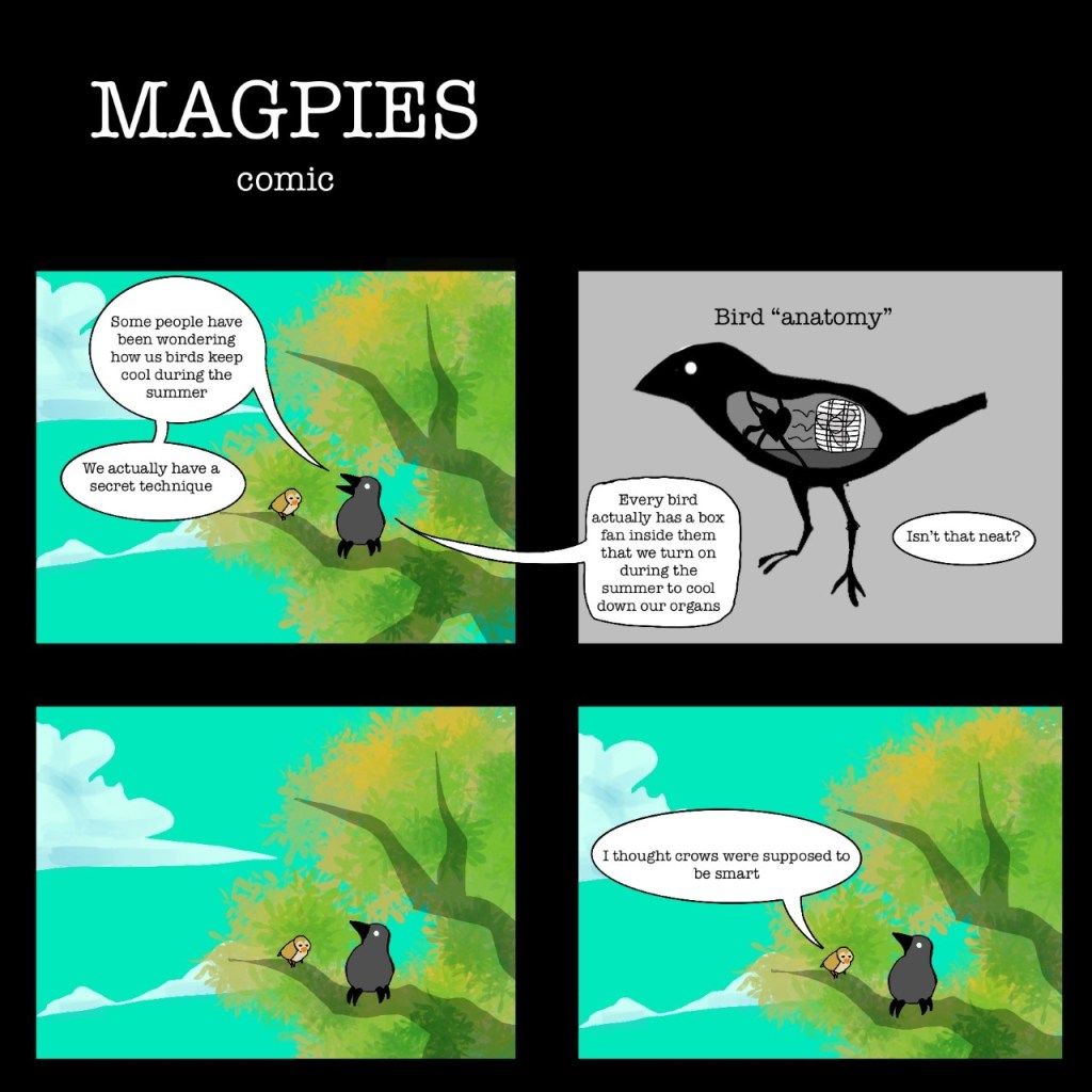 art Magpies Comic By Magpies on August 22, 2022 • ( Leave a comment ) By Isaac Adas Share this: Click to share on X (Opens in new window) X Click to share on Facebook (Opens in new window) Facebook Like Loading... Related Categories: art, comic, featured Tagged as: art, comic, featured