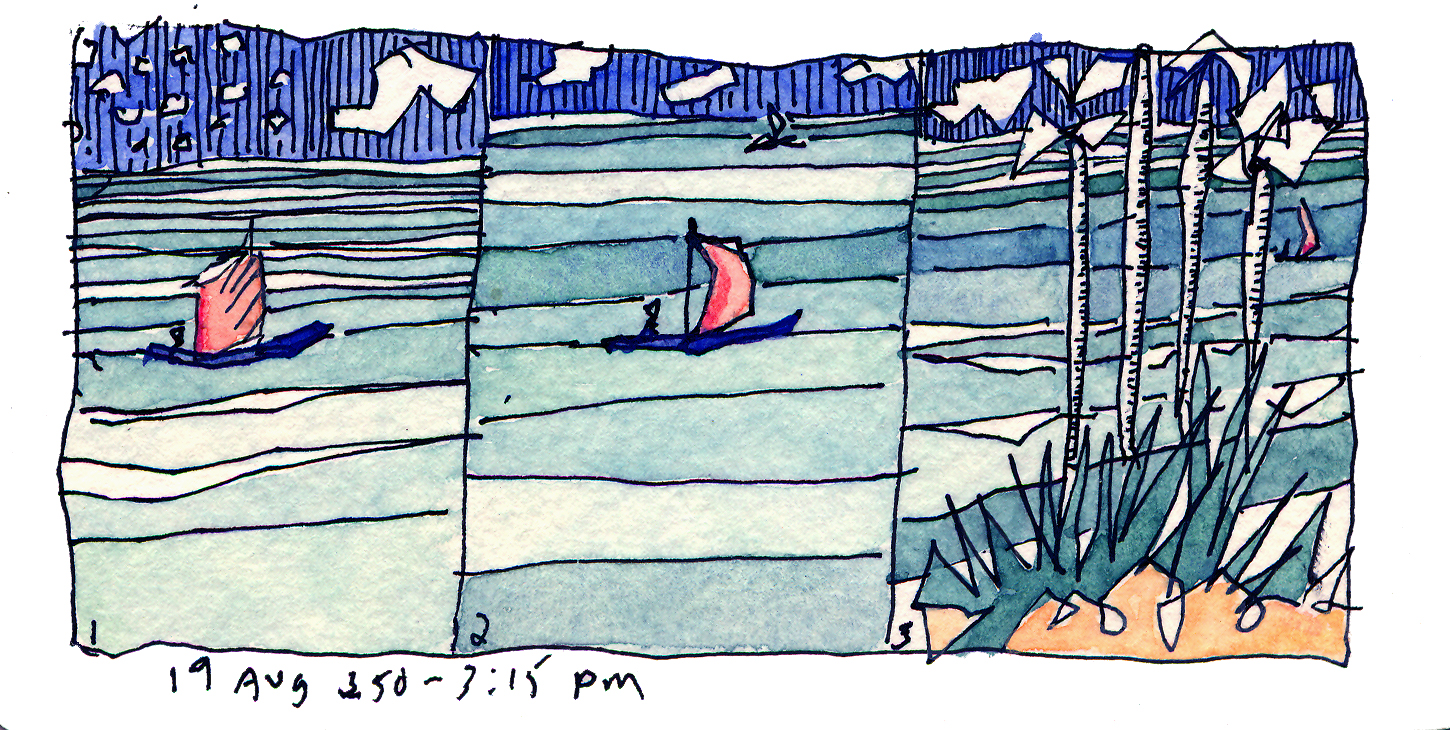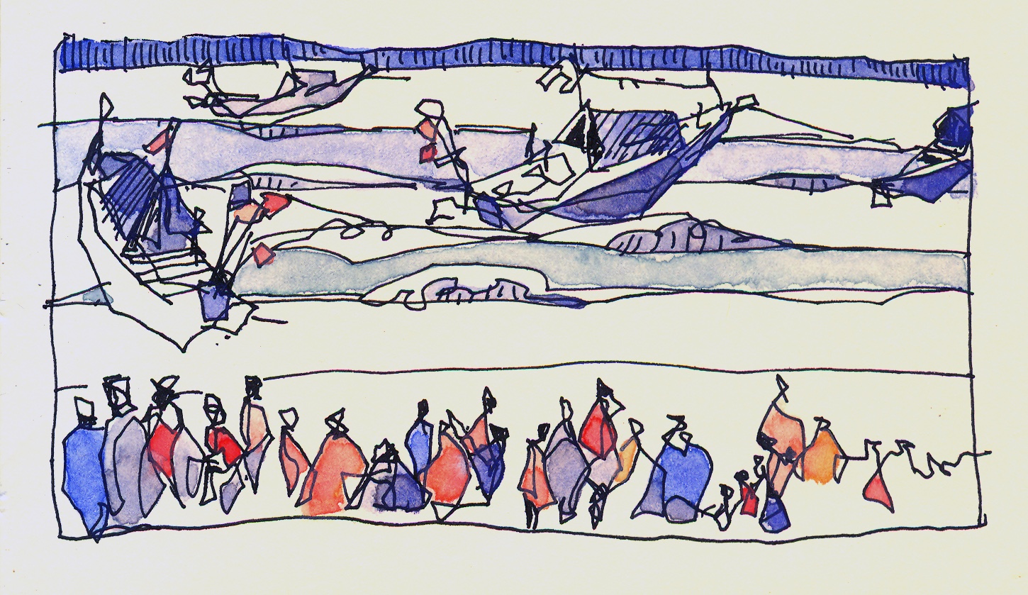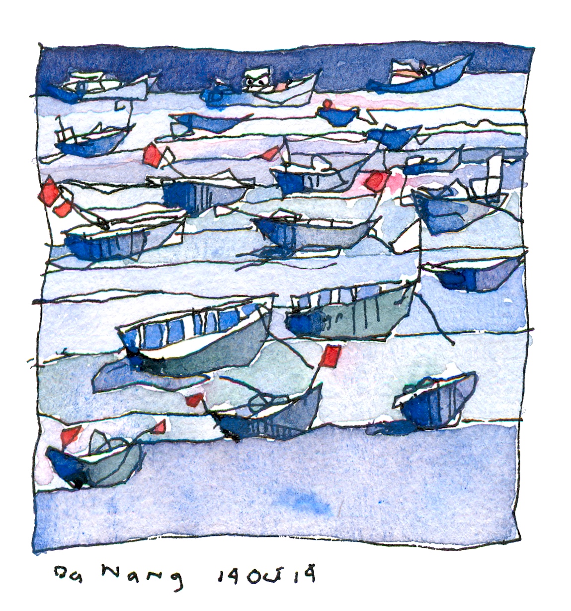 Draw boats, barges, canoes, pirogues, dhows…those round blue and green bamboo fishing boats from Vietnam. All are great subjects and usually in interesting places.