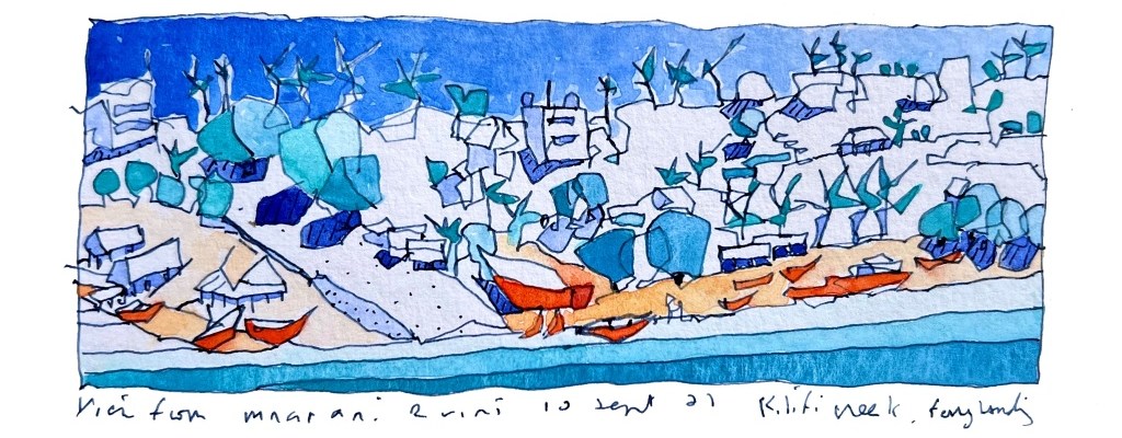 Drawings from Kilifi, getting there, the landscape, the colors, the boats.