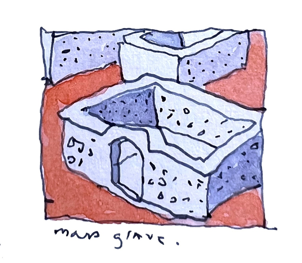 The construction seemed a bit brutal, they excavated soil to build the roadbed but left a very changed landscape. I probably exaggerate in the drawing but the houses left behind were a bit forlorn.