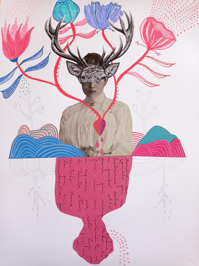“How do you represent that which is not there but which occupies an affective place, a place in our mind?” Margarita Brum asks. But her vibrant collages do just that. They give life to the intangible. Memories and dreams, loss, loneliness, and connection, all take root and bloom, curling and trailing off the page, and taking on personalities at once mysterious and familiar. They beckon to us into a strange, enticing world, a world where we’ll find some answers, but even more questions. We were grateful for the chance to discuss some of those questions with her.