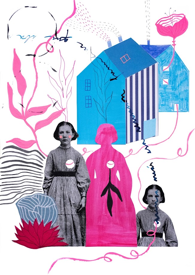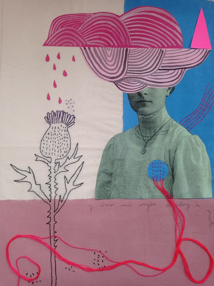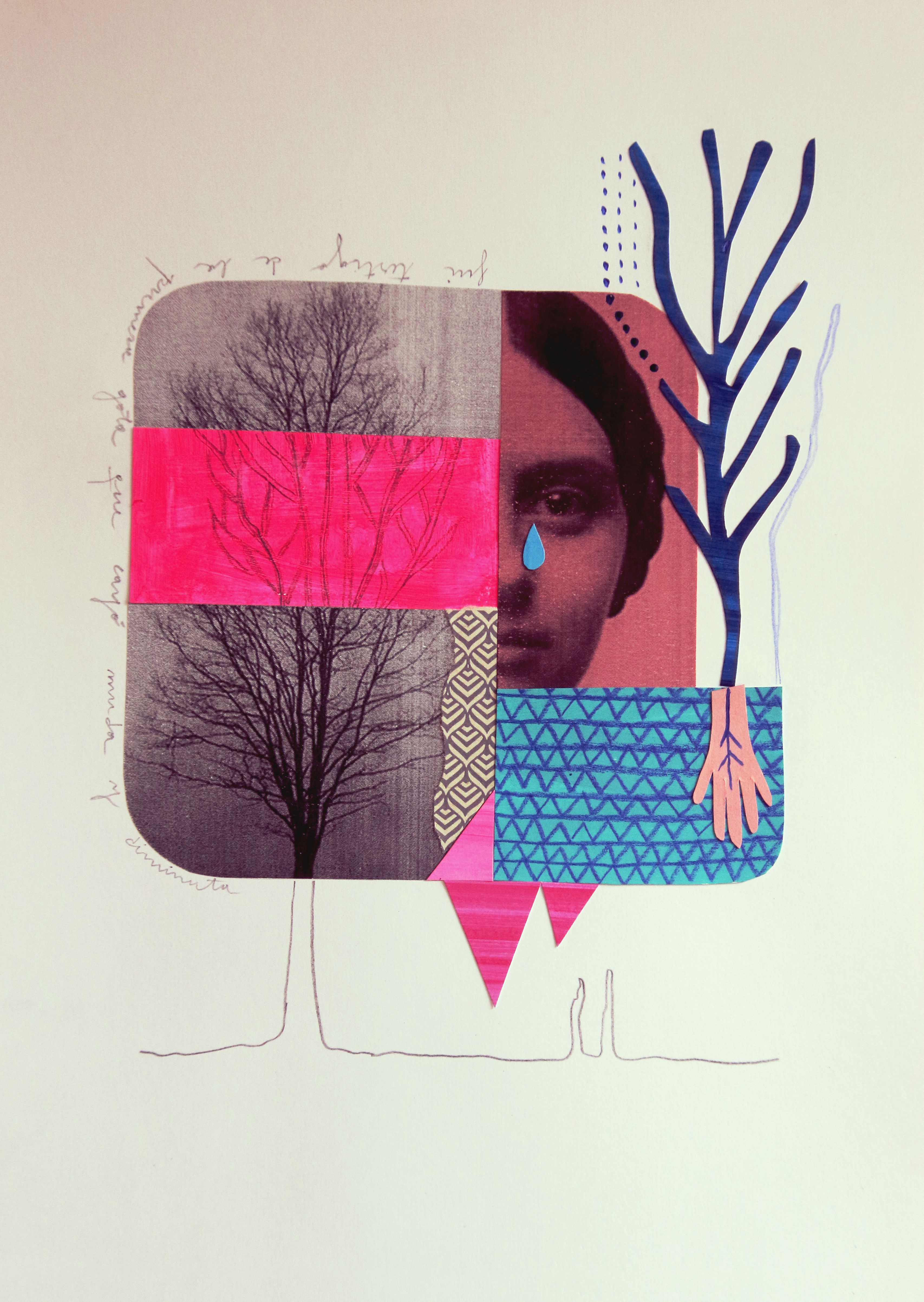 I work with various materials, including embroidery, drawing, textile art on different supports. In collage I find a space of freedom where everything can be combined and resignified.