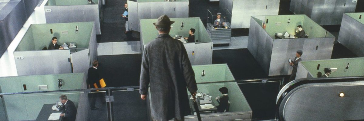 Tati finds comedy in the moments and places that the characters don’t notice. They’re so caught up in what they’re supposed to see, that they miss the thing they really want to see. In Playtime, a gaggle of American tourists herd themselves into a thoroughly modern building, excited about what they’ll find within [It’s a set! Tati built it! Incredible! – ed]. As they pass through the highly polished glass doors we see a fleeting glimpse of the Eiffel Tower, reflected in the door, swinging by unnoticed. Often, in Tati films, technology is the reason we forget to look around us. We spend so much time understanding and operating our labor-saving devices that we don’t have time to go and “whistle and put our hands in our pockets and be free.” What would he make of us now, with our heads bent constantly looking at our phones? What would he make of our efforts to understand this new way of stylizing and understanding gestures and expressions? What would he make of emojis? He would find the humor in it all, no doubt, and smile at the new opportunities for misunderstandings, and maybe be glad to be able to make a little movie whenever the mood or the situation inspired him.
