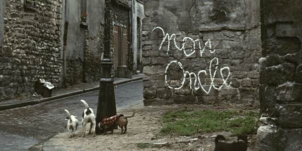 Tati tells us that he learns many lessons from dogs. In their honesty and unselfconsciousness they are the greatest of comedians. He also speaks of his films as his children, he loves them all because he made them, and he had complete freedom to do so exactly as he felt they needed to be. They are perfectly, honestly strange in the way most humans are, under the veneer of polite conventional behavior. And there is something childlike about his films, though they’re not childish at all; in many ways they are incredibly sophisticated. It takes a great deal of work and planning and genius to pull off the intricate choreography that makes Tati’s films so pitch-perfect and seemingly simple. But, like a child, they ask questions. Why? Why do we do this? Why do we behave this way? Why do we say these things? And when you answer a child often you say, “I don’t know, we do these things because we do these things. Because everybody does these things.” But Tati gently pokes a hole in this logic, enough to let the absurdity creep in, enough to change the way we think about these questions we can’t really answer.