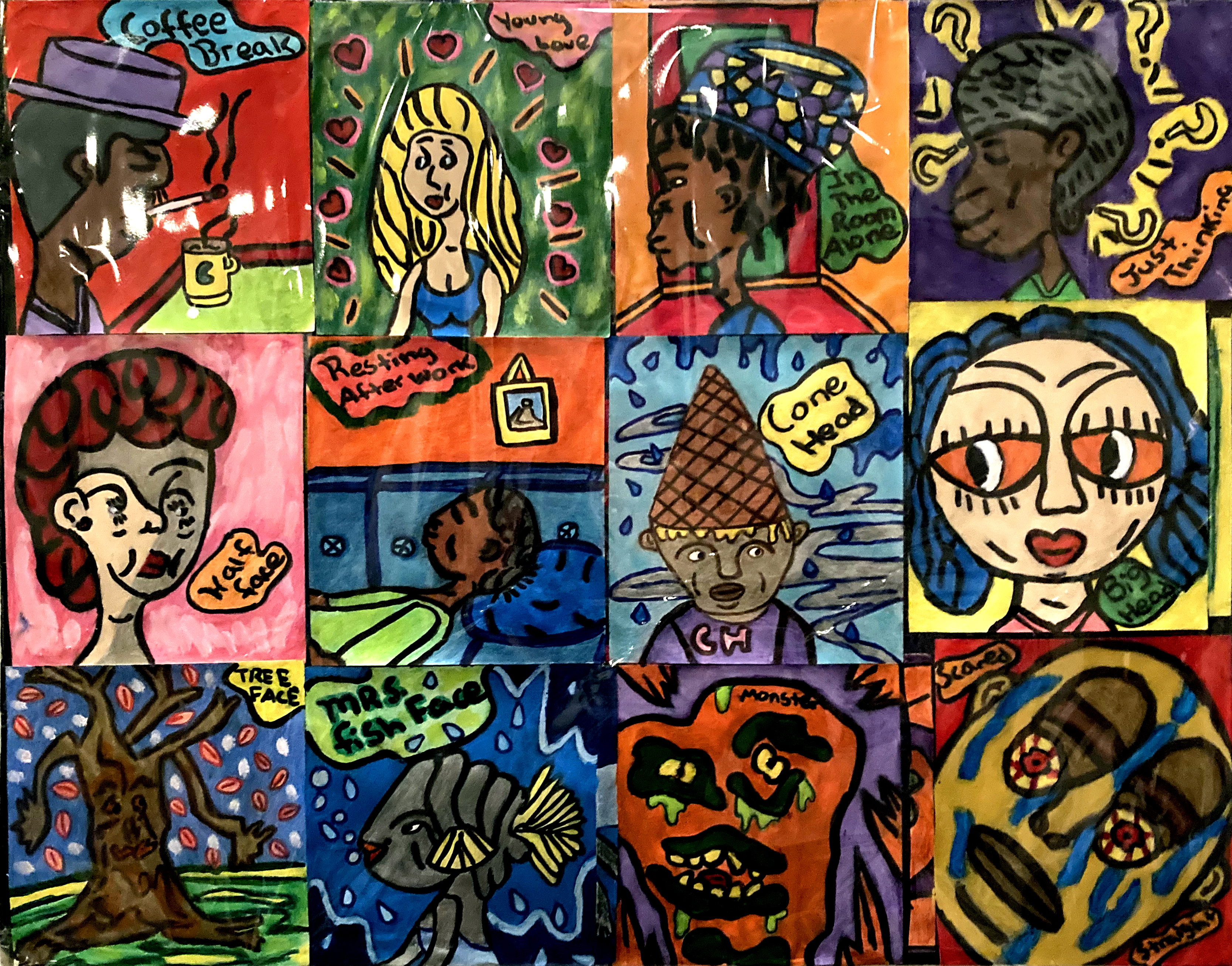 Derrick Branch falls in love with his art, and has felt at times that art is his only friend. Nour Galil says, “I feel the beauty around me – color, shadow, people and light. From the beauty, I get ideas for my art…Art is something I cannot live without. If I couldn’t do art, I feel I would die. Art is my life.” John Hayes feels like he’s escaping when he makes art, “I lock myself into whatever picture I’m drawing. The house could be burning down, and I’d still be drawing.” For John Hendryx art is like praying, and for Warcheerah Kilima art is like therapy. He says that “If all the people in the world did art, a lot of the problems would be solved…” When people admire Carol Johnson’s artwork it’s an overwhelming feeling of being loved, and when Shorty Rose is doing art he feels “perfect.” Though the members of the ANEW Artists’ Alliance are varied in background, style, and media, they are universally inspiring in their passion for creating art and their generosity in sharing it with others.