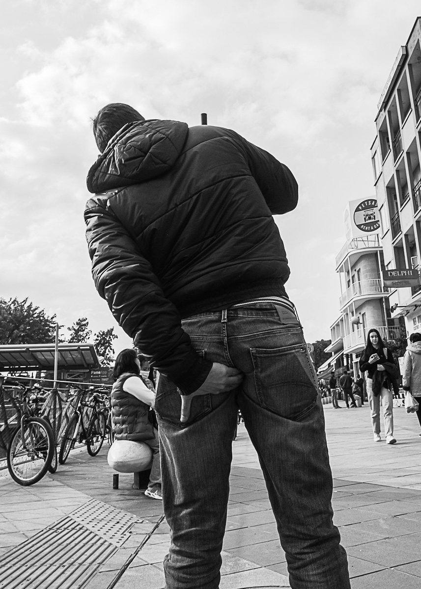 As a street photographer I am naturally drawn to scenes that catch my eye and hopefully the viewers of my photographs. Sometimes these scenes have a funny aspect to them. At the same time I’m trying not to ridicule anyone by capturing such shots. This can be a very tricky thing to work around and has gotten me in trouble quite a few times…people calling the cops on me, threatening to kill me, or just getting really aggressive with me… living in Cyprus where street photography is not really a common practice like in a big city, people look at me with suspicion, sometimes fear, and are generally not too keen on having their photos being taken by strangers. I mostly shoot without looking through my camera…after maybe hundred thousand shots I get a pretty good idea of what my lens can see without having to look through the viewfinder or the LCD… so I try to do everything incognito.