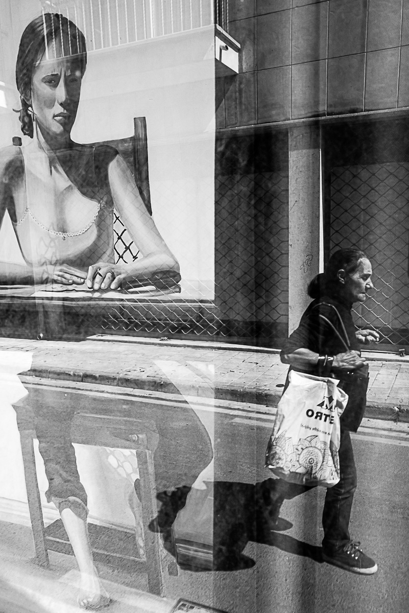 As I kind of implied before, I don’t like to think of myself as a dog or pigeon or reflection or shadow type of street photographer. I am intrigued by all of the above and more that could possibly give me a composition that I consider worthwhile making. So yes, both working with reflections and shadows especially since I am shooting with a black and white digital sensor can yield very pleasing results when composed elegantly.