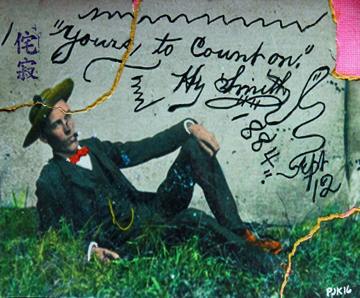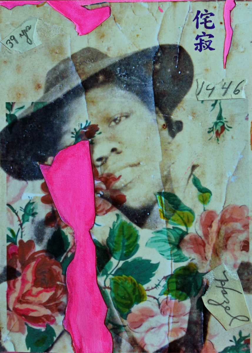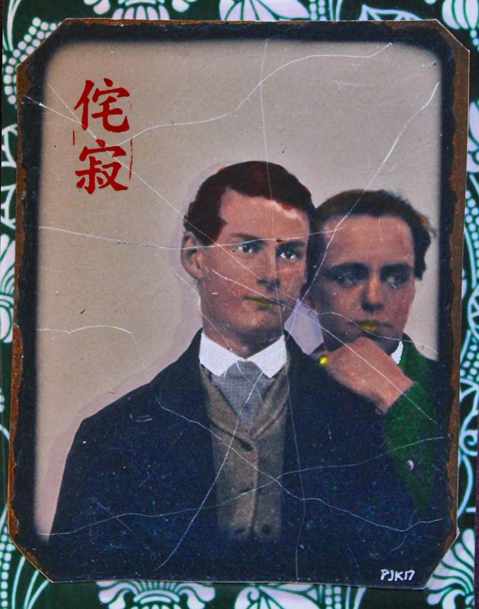 Wabi-sabi embraces the natural cycle of growth and decay. The life of an object and its impermanence are evidenced in patina and wear, including rips, any visible repairs (scotch tape or glue) or additions: pen, ink, stains, pencil marks. I have stamped each work in the series with wabi-sabi written in Japanese characters.