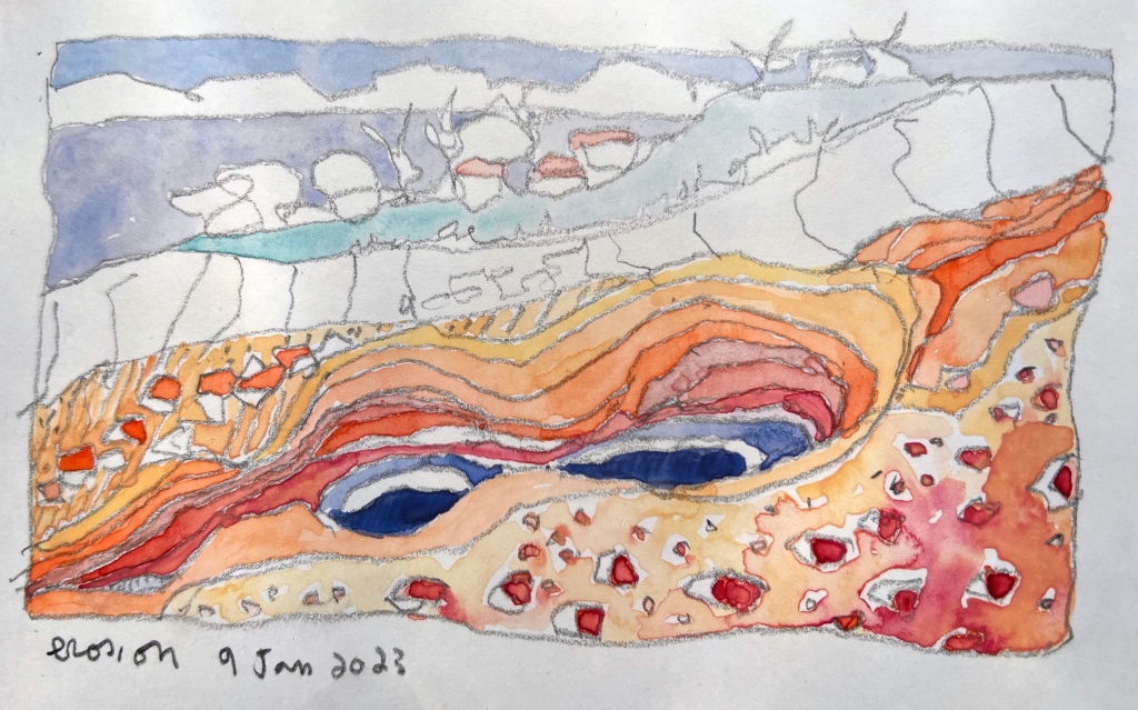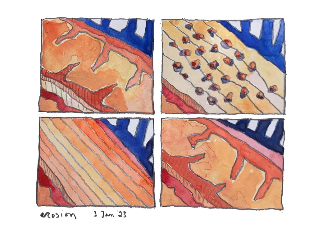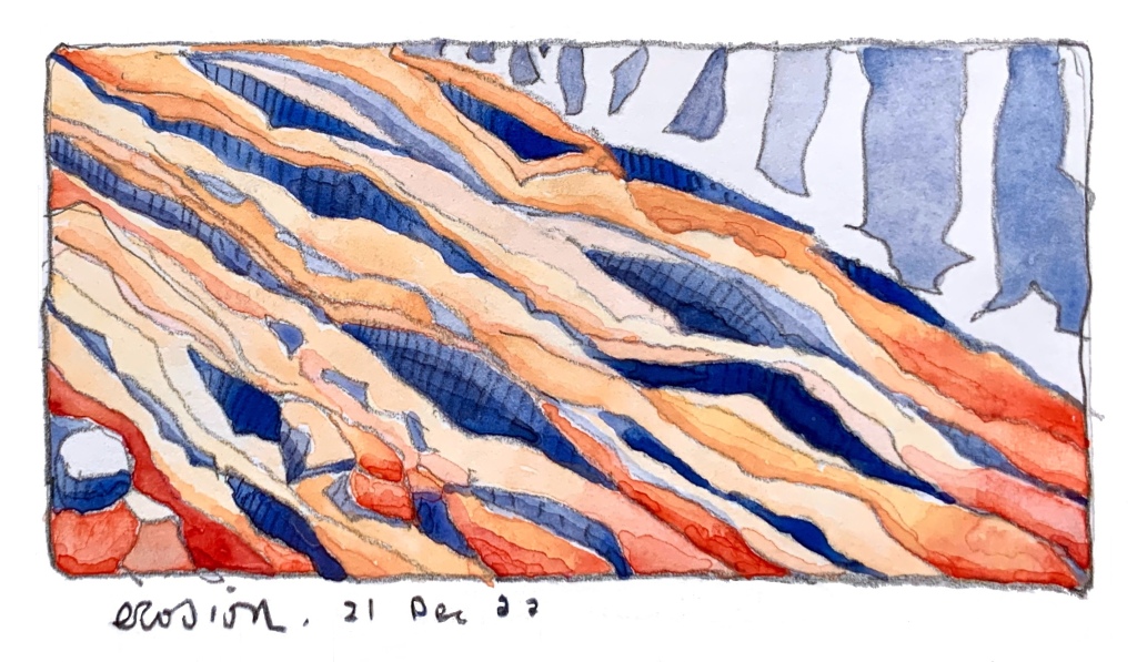 A final erosion image before I risk boring the reader. We will be leaving this place in the next months, probably to environments with fewer hills, more concrete and paving, less sunshine and certainly less apparent daily erosion.