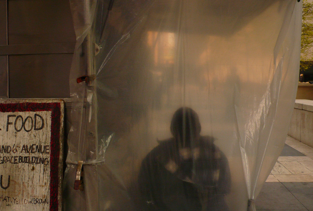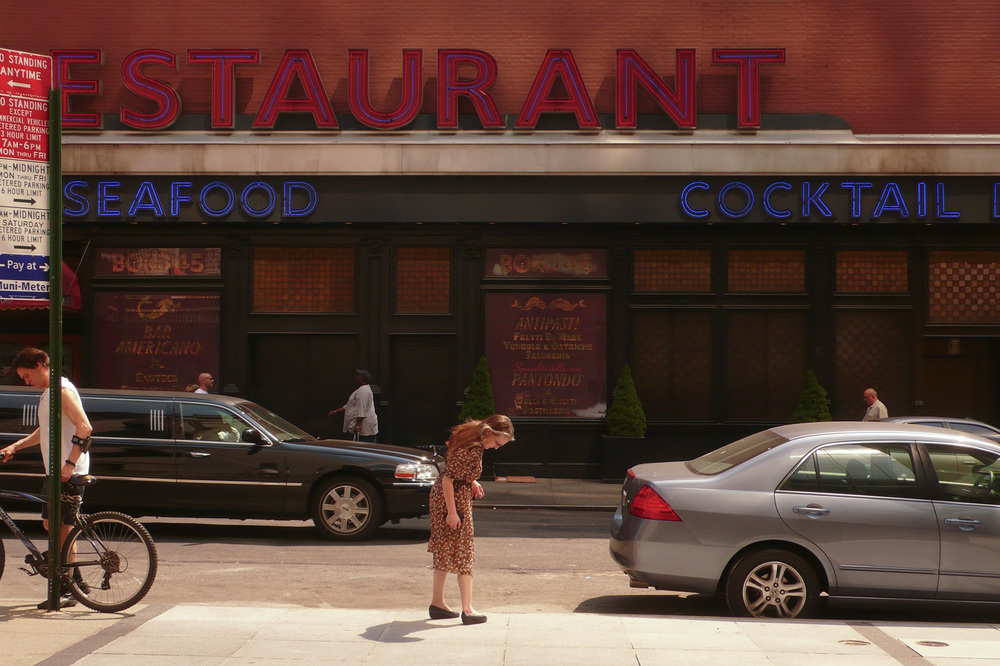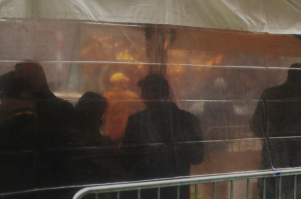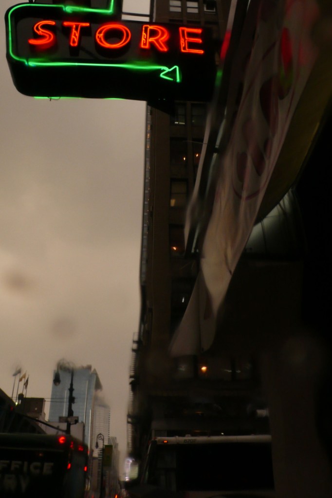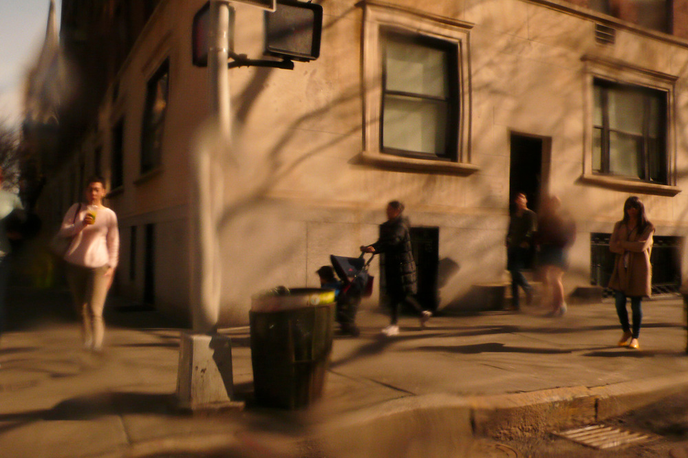 Similar question, but more about the actual focus of the images—about what is in focus and what is not. I’m reading Bernice Abbott’s introduction to The World of Atget, and her description of his vision of Paris reminded me of your vision of NYC. Many of Atget’s images have sort of ghostly creatures in them–I’ve always assumed it was because the long exposure didn’t allow for the movement of dogs or horses or people with no time to pose for a photograph. But in many of your photographs people are deliberately (and beautifully) out of focus, or seen in reflections, puddles, plastic wrap, or a blur of movement. I’m curious about your idea of capturing people and documenting the world that we live in.