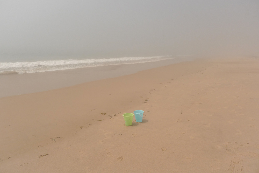 I wonder about the art of finding the beauty in the discarded or the everyday and overlooked. A plastic water bottle, a glimpse into a construction site, a rainy car window at a certain time of day, warped metal, plastic buckets on an empty beach. Can you talk a little about how that becomes part of your work?