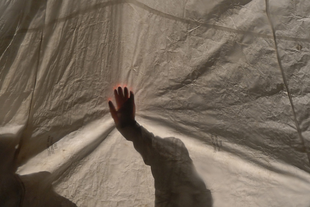 Part A. These textures—slick streets, screens, torn cloths, wooden barriers—lend a very painterly feeling to your work. How do you incorporate texture and surface into the composition of your photographs?