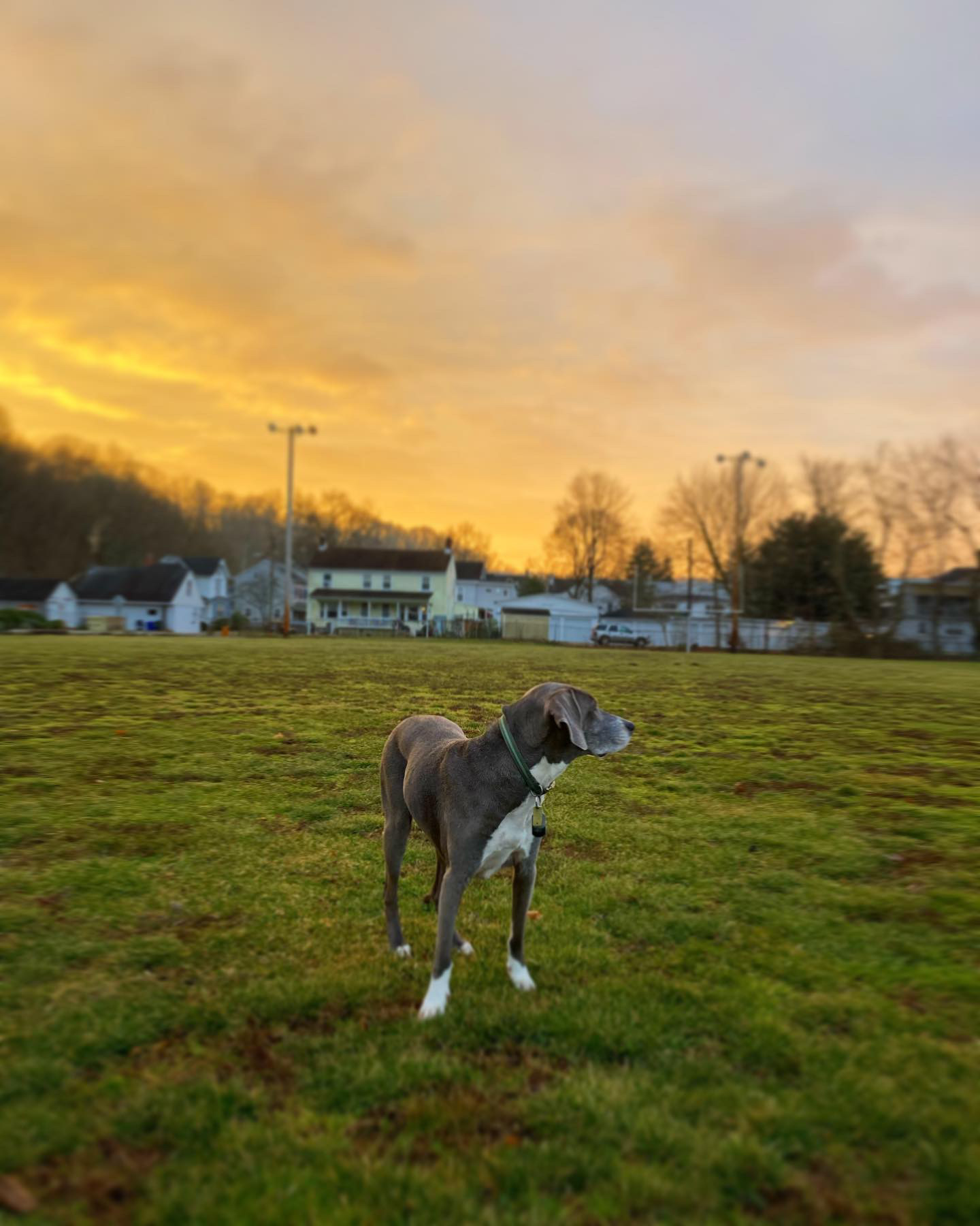 Every walk for a month or so in early spring, she brought home a stick. She would run around the field, trying one stick or another, but once she’d found a good stick there was no dillydallying and stopping to smell anything or talk to a dog friend. She’d just get home as fast as she could, doggedly, navigating all obstacles with the stick in her mouth. And when we got home she would leave the stick by our front door. We would gather the sticks and put them in the fire pit in our very slowly thawing backyard.
