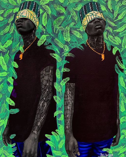 Nigerian-based contemporary african artist Paul Ayihawu uses charcoal and Acrylic to tell the story of african in a new light. His work focuses more on the social-cultural issues and the impact of colonialism on African cultures and values. He expressed this often with flipped portraits of black people dressed in a hybrid of western and african dresses majorly in ‘ankara’, an african print cloth. He is fervent about telling the untold, unheard and silent stories of the black community. His works are in private collections in the USA, South Africa, Ghana and Nigeria. He was 2022 Visiting Fellow at the Noldor Residency. See more of his work on Facebook at Paul Ayihawu Arts and on Instagram at paul_ayihawu.