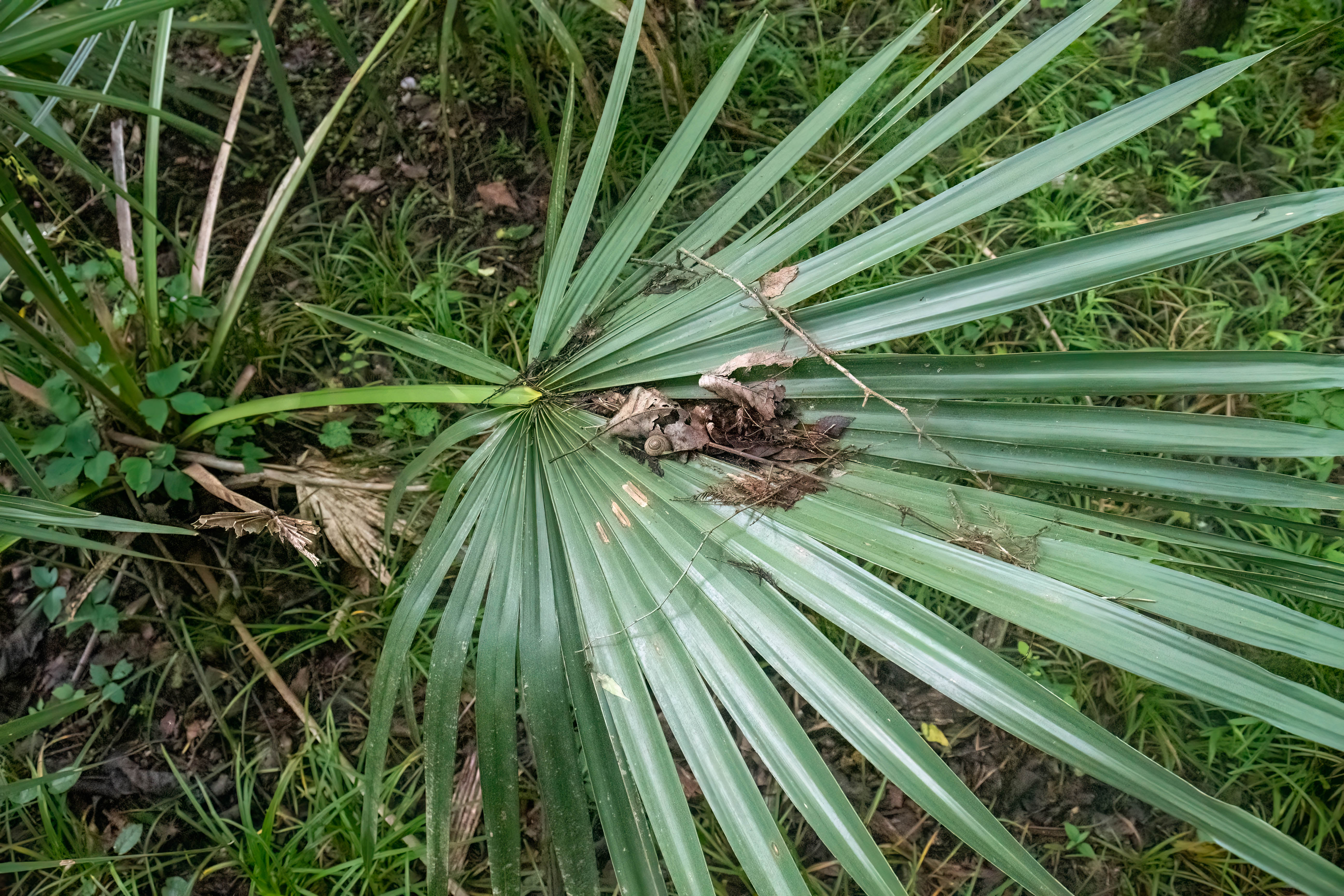 After a few hundred yards of this, or more or less – impossible to recall, we found a bank high enough that it was dry up top. Its palmettos were shoved over far to one side so that there was some open grass for camping. We beached and set up camp in the wet leaf litter. As the sun set, we could see with the last light that we are not adjacent to anything resembling a creek – just pools and small runs of water scant inches deep as far as we could see in any direction. The high side of our island with grass and palmetto descended on the other into a flat of lizard tail and then trees that were interspersed with areas of mud, cypress knees, and not much else.
