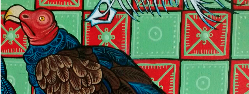 I’m working on the frame intended for “Vulture Serenade” while the piece is away at the photographer. There’s often a mixture of relief and anxiety when a big project is finished. I pour myself completely into whatever I’m doing and since art is pretty much all I do these days, there’s a gaping hole in my life whenever the drafting table is empty. Painting frames helps.