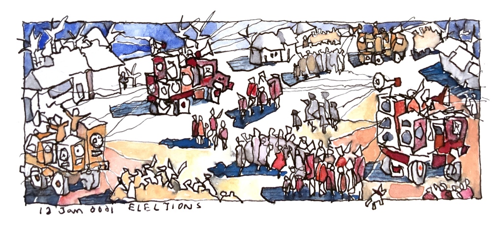 Given the ongoing pandemic, the rallies that took place before the elections were probably not a good idea. Occasionally when the opposition party seemed to gather too much support the president would use the COVID rules to shut down opposition rallies. Gathering crowds of people, moving from village to village, shouting and singing were effective ways to spread SARS-CoV-2. They had big sound systems mounted on trucks covered in yellow or red posters, depending on the party. These would drive down the main road once or twice an hour and usually park at the marketplace corner near my house, generate a gathering, play inspirational music and shout slogans. Loud events but fortunately short.