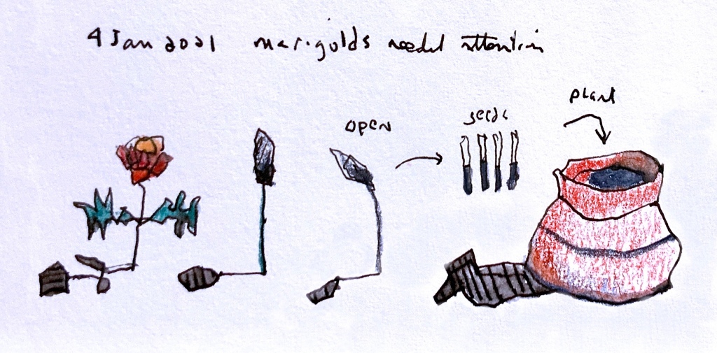 East African Lockdown Drawings: Bamboo and Marigolds