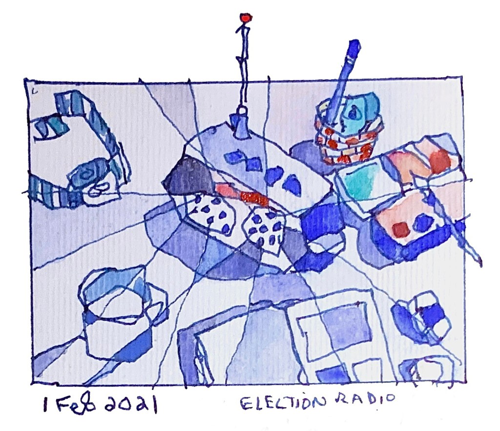 Another view of my election radio. I could pick up music from DRC stations. I could hear young men shouting emphatically in a foreign language. There were often church hymns, and long addresses from political figures and loud advertisements for flavoured drinks. It was a fascinating device, from a different era and mostly superseded by the internet but useful in this context.