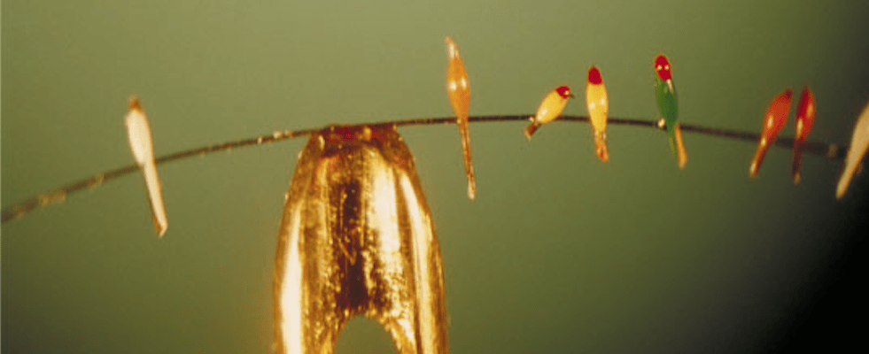 A deep friendship blossomed between the two artists, and they arrived at a unique agreement by which each became the other’s student. In microminiature sculpture, Sandaldjian found an art form analogous to music in its extremes of commitment, passion, and extravagance channeled into controlled, precise movement.