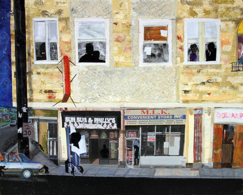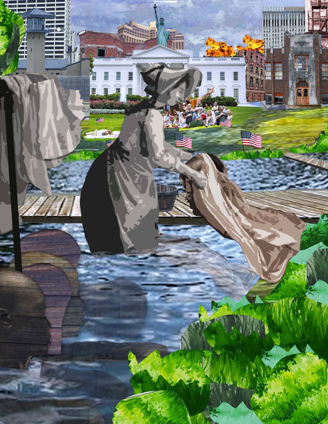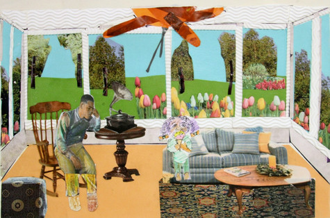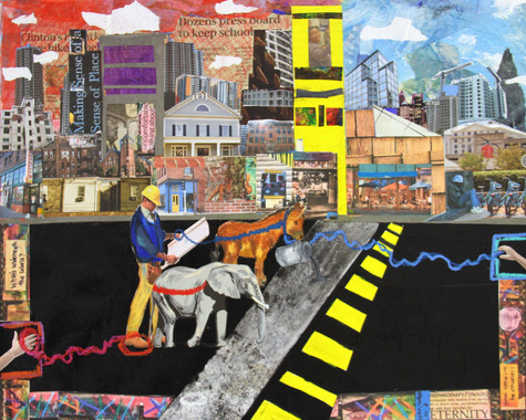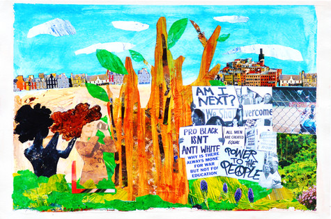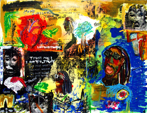 The spirit of Ubunto drives my work. This idea suggests that the invisible threads of interdependence connect individuals because of our shared humanity. Therefore, my works tend to explore these values through shared narrative themes (e.g., aspirations, longings, loss, happiness, etc.) and societal issues (e.g., institutional racism, politics, poverty, religion, etc.) which I have translated into collage paintings.
