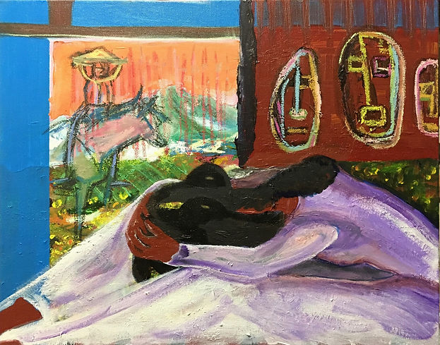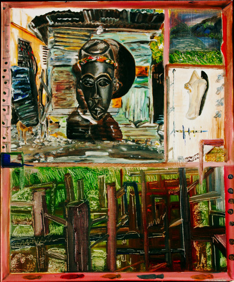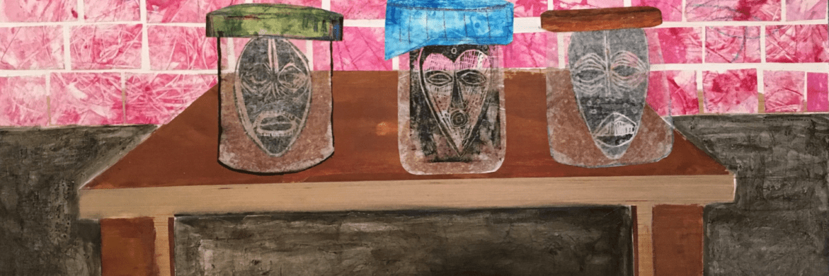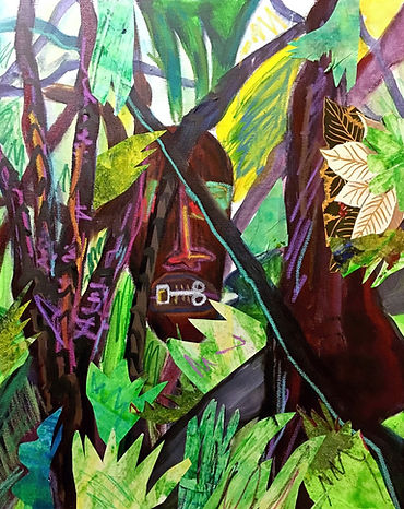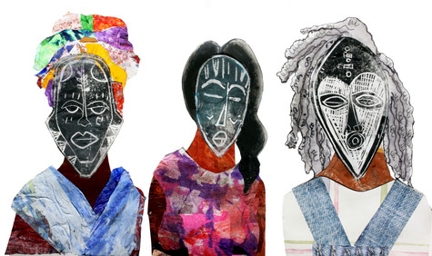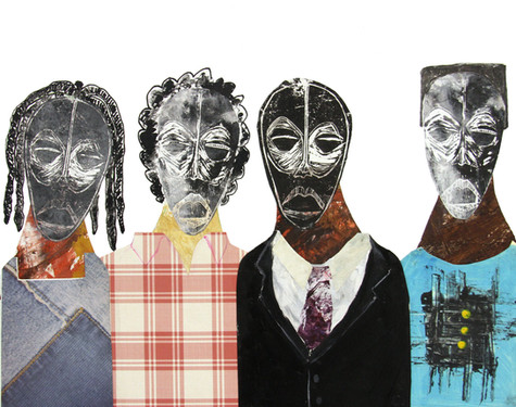 My masks series started from my fascination with African Masks. I think this started with my aunt, who always had a collection of interesting Masks in her home. Some of the artists that I draw upon, such as Picasso, Lois Mailou Jones, Romare Bearden, Basquiat, have all used masks in some form or another, whether it be a direct representation of a specific traditional mask or some form of abstraction (for instance Basquiat).