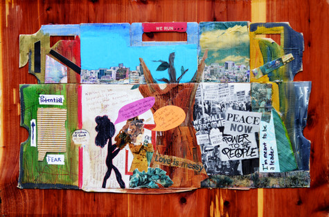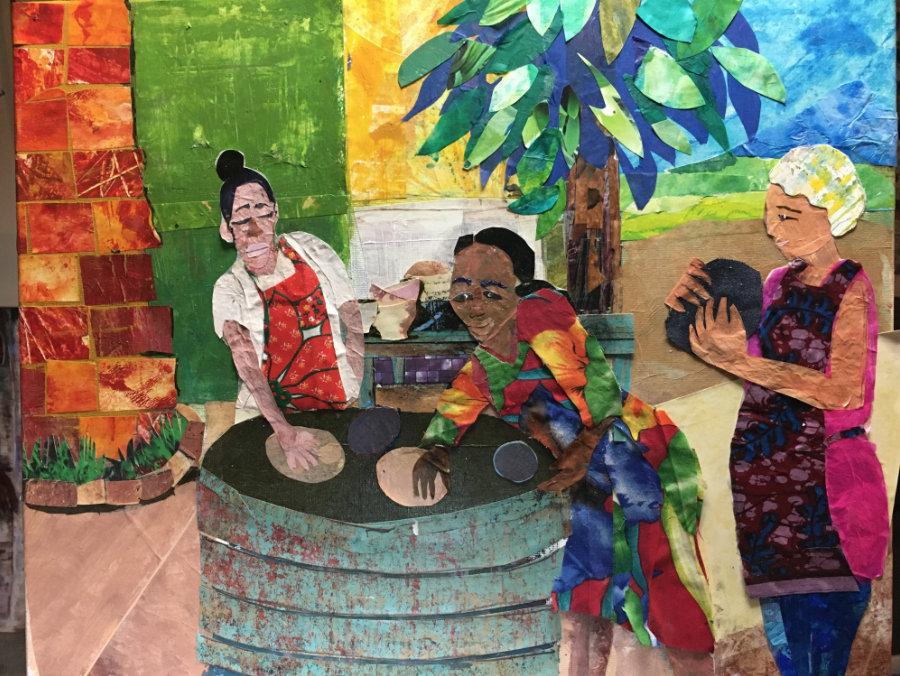 Being an ESOL teacher also reminds me of the Ubuntu philosophy, which reverberates in my thinking as both a teacher and learner from my students. Being blessed to work with students from diverse backgrounds, both culturally and linguistically, etc., continues to remind me that my role as an artist is to leverage my art as a medium that brings various people together, one collage narrative at a time.