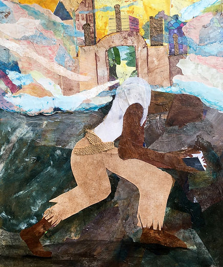 For my more detailed collages, I begin with a narrative, one that I’ve heard or witnessed. Sometimes the narrative might come about through an image taken that I decide to explore and create. These collages tend to be loosely sketched out with pencil and then painted with watercolor.
